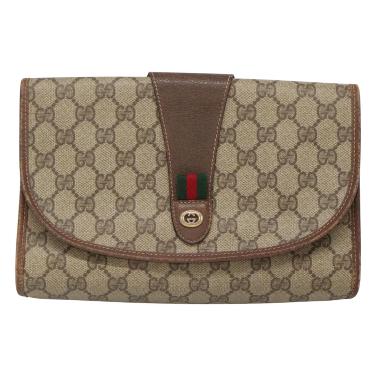 GUCCI GG Supreme Web Sherry Line Clutch Bag PVC Beige Gold 89 01 030 Auth 126165
