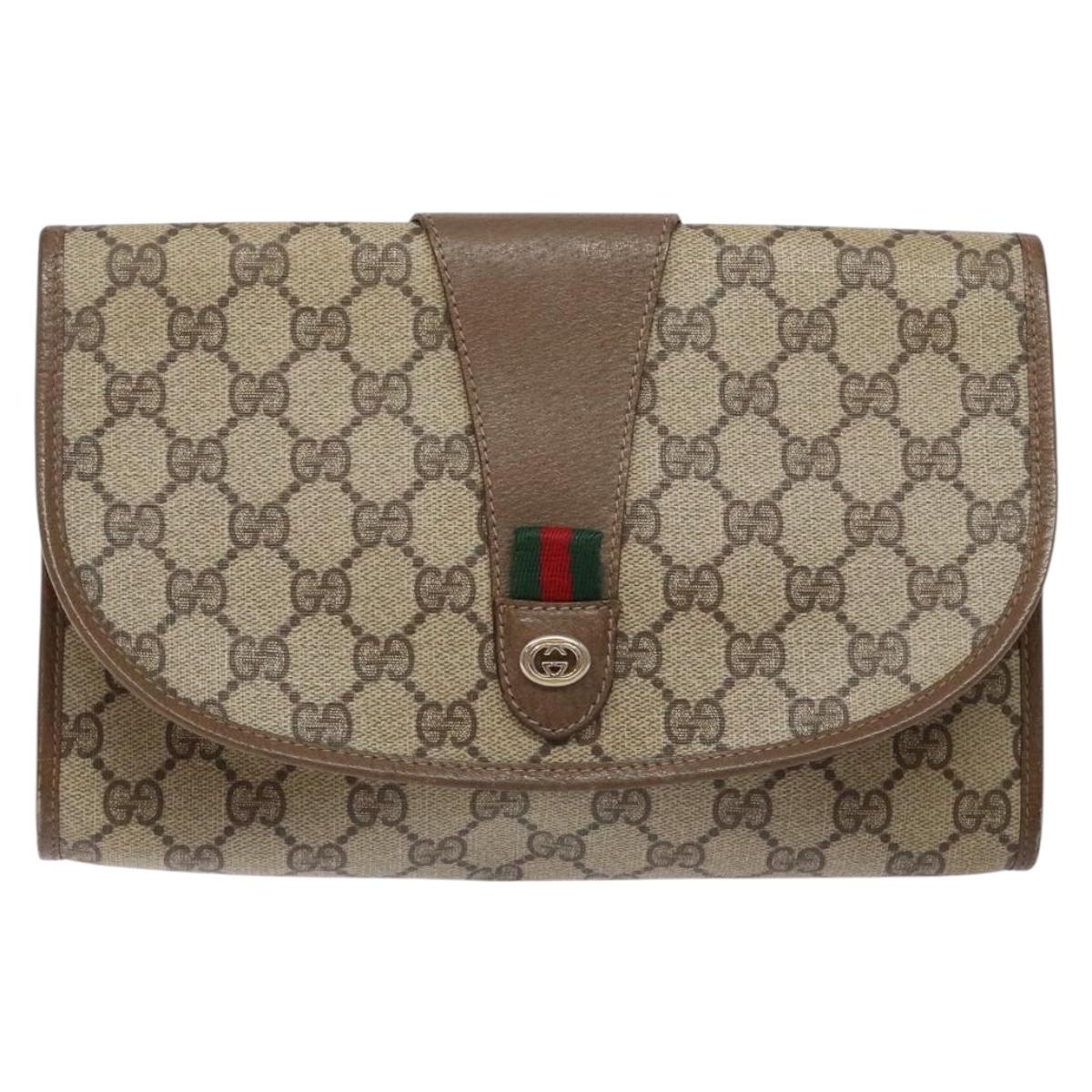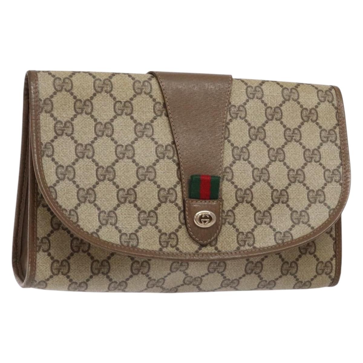 GUCCI GG Supreme Web Sherry Line Clutch Bag PVC Beige Gold 89 01 030 Auth 141030