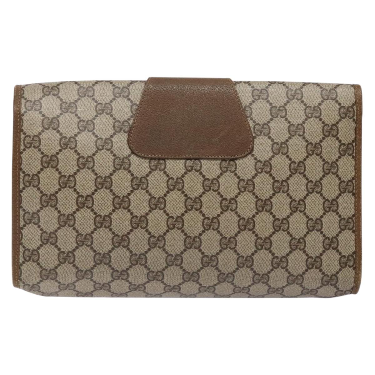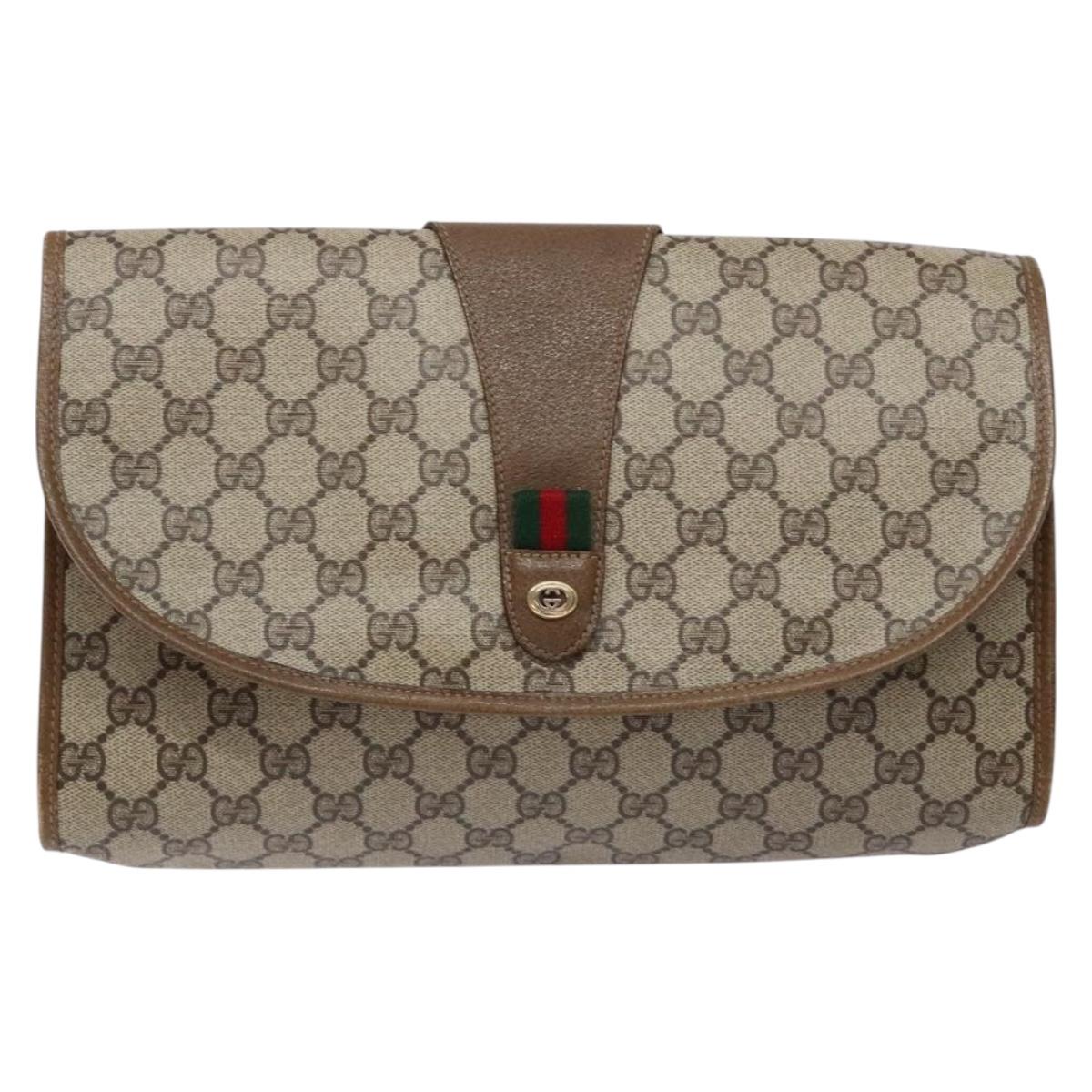 GUCCI GG Supreme Web Sherry Line Clutch Bag PVC Beige Gold 89 01 031 Auth 129766