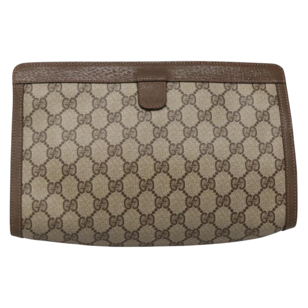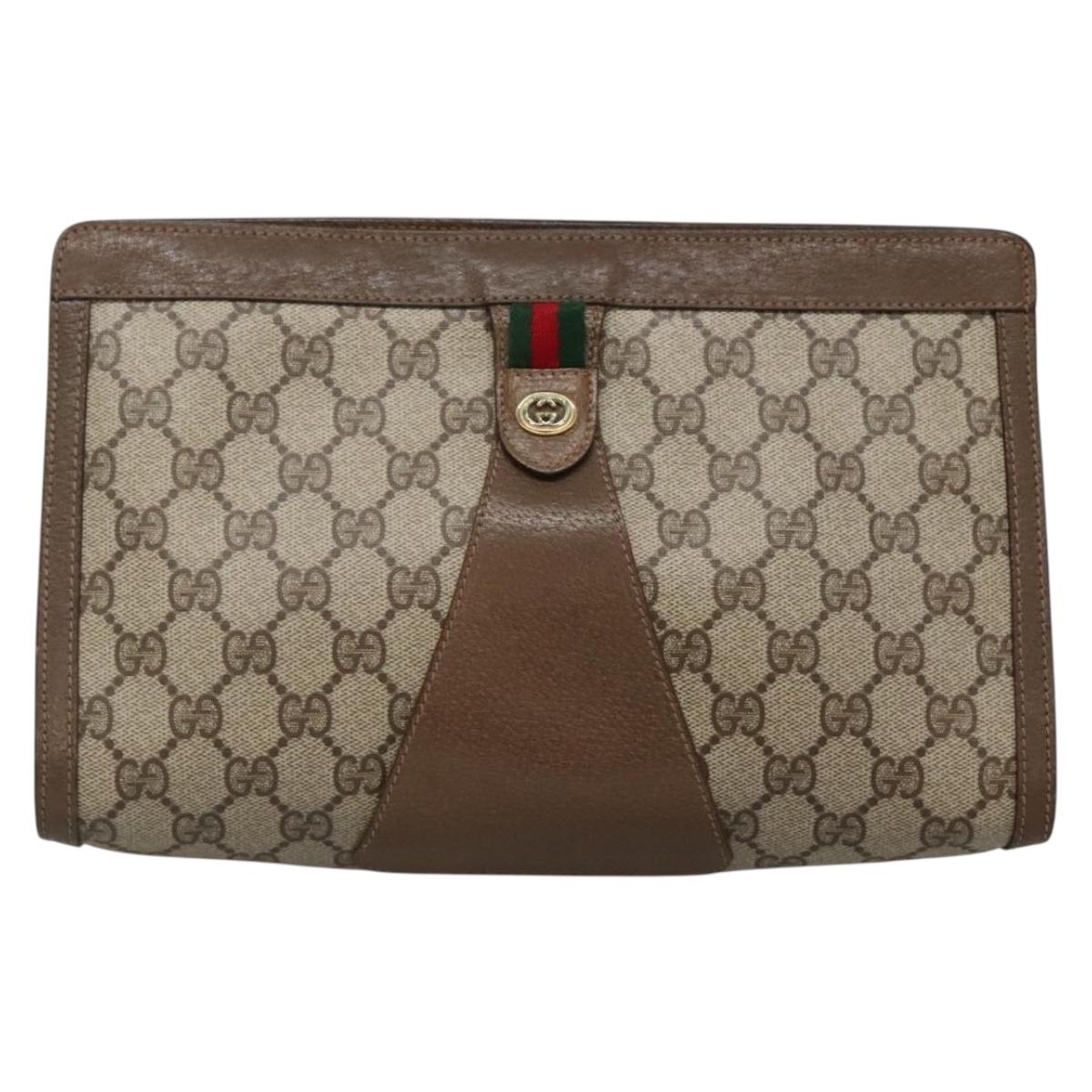 GUCCI GG Supreme Web Sherry Line Clutch Bag PVC Beige Gold 89 01 033 Auth BA4626
