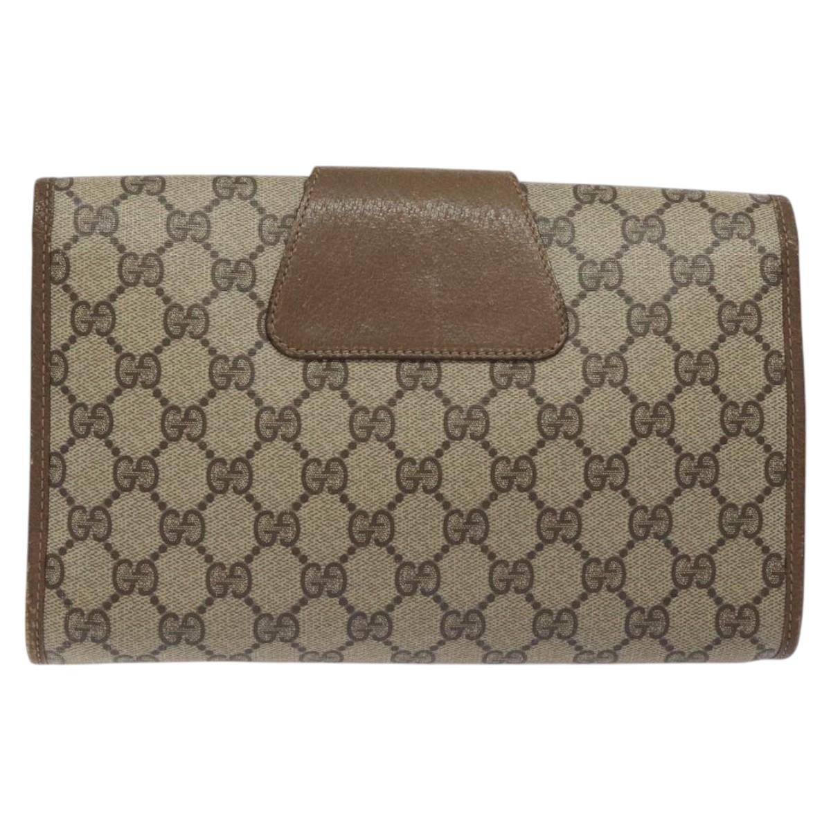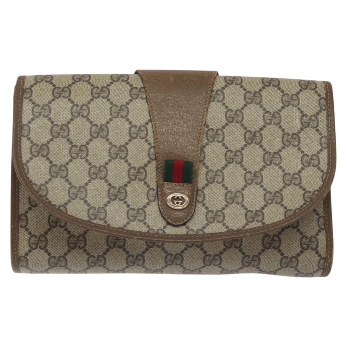 GUCCI GG Supreme Web Sherry Line Clutch Bag PVC Beige Gold 89 01 030 Auth BA3345