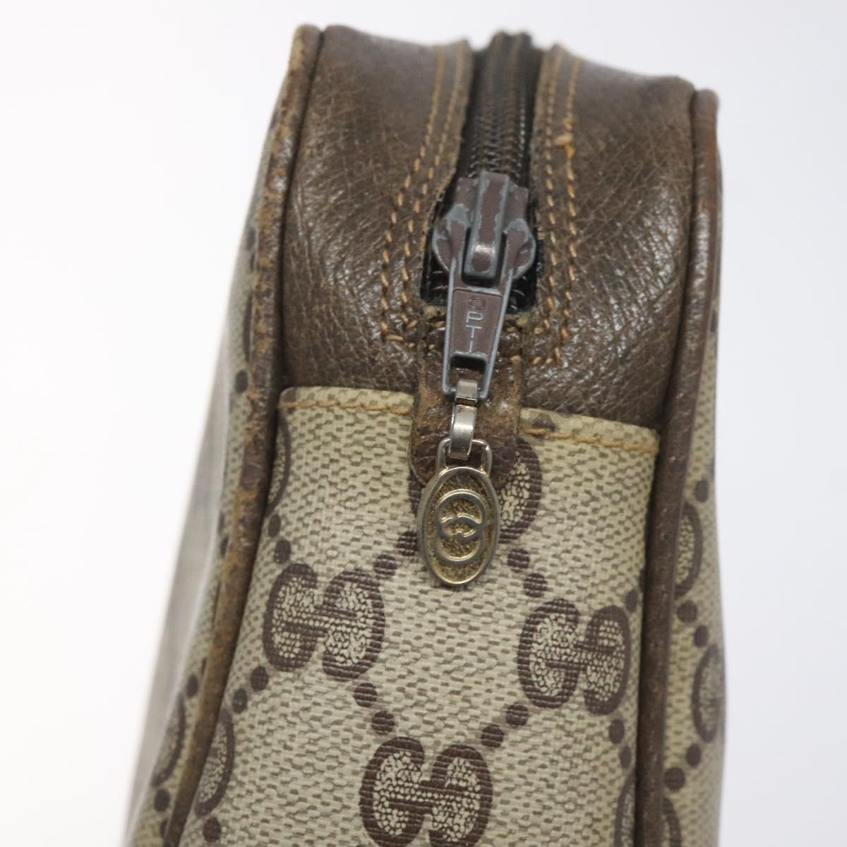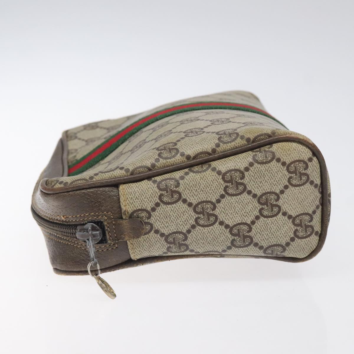 GUCCI GG Supreme Web Sherry Line Clutch Bag PVC Beige Gold Red Auth BA3731