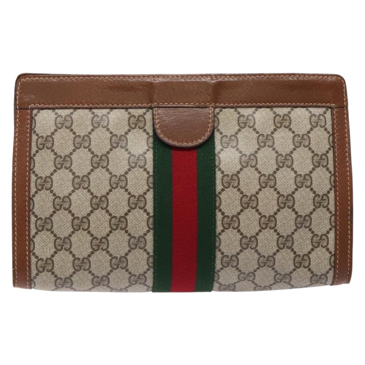 GUCCI GG Supreme Web Sherry Line Clutch Bag PVC Beige Red 010 378 Auth gh747
