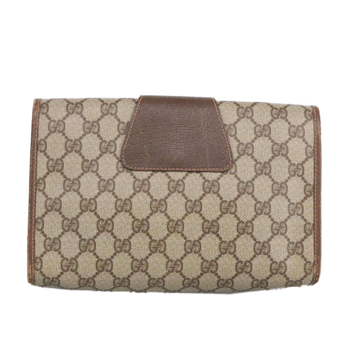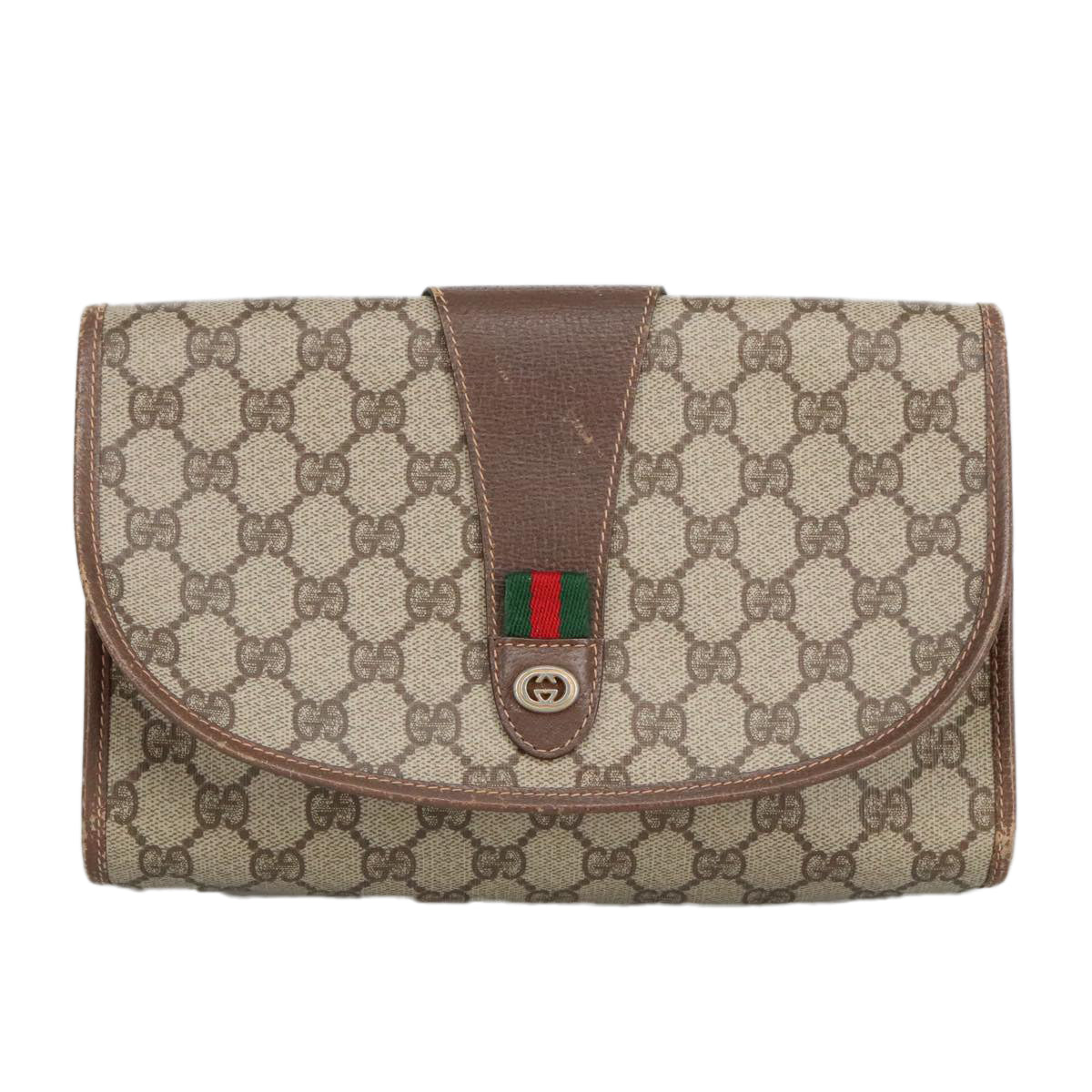 GUCCI GG Supreme Web Sherry Line Clutch Bag PVC Beige Red 156 01 030 Auth 98079