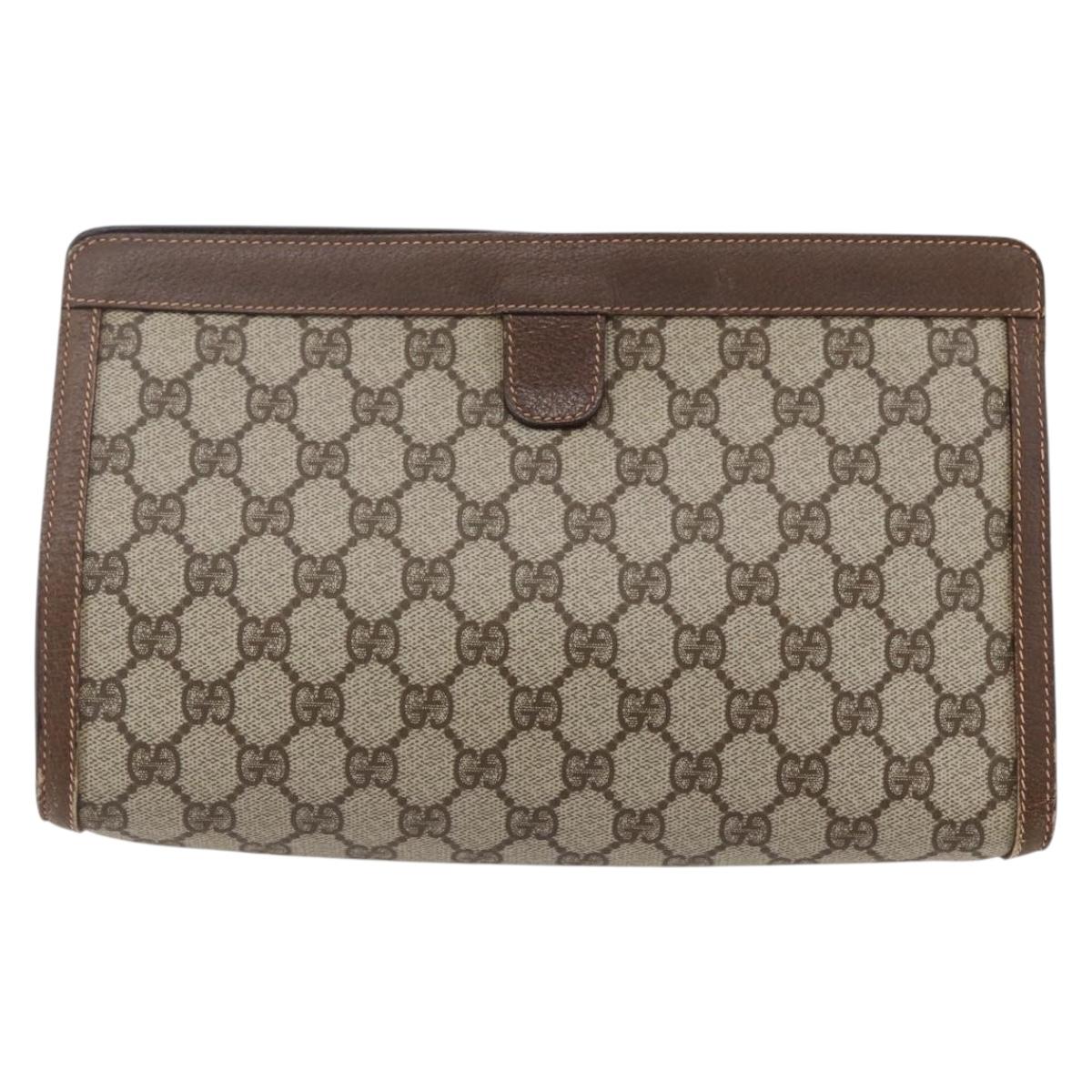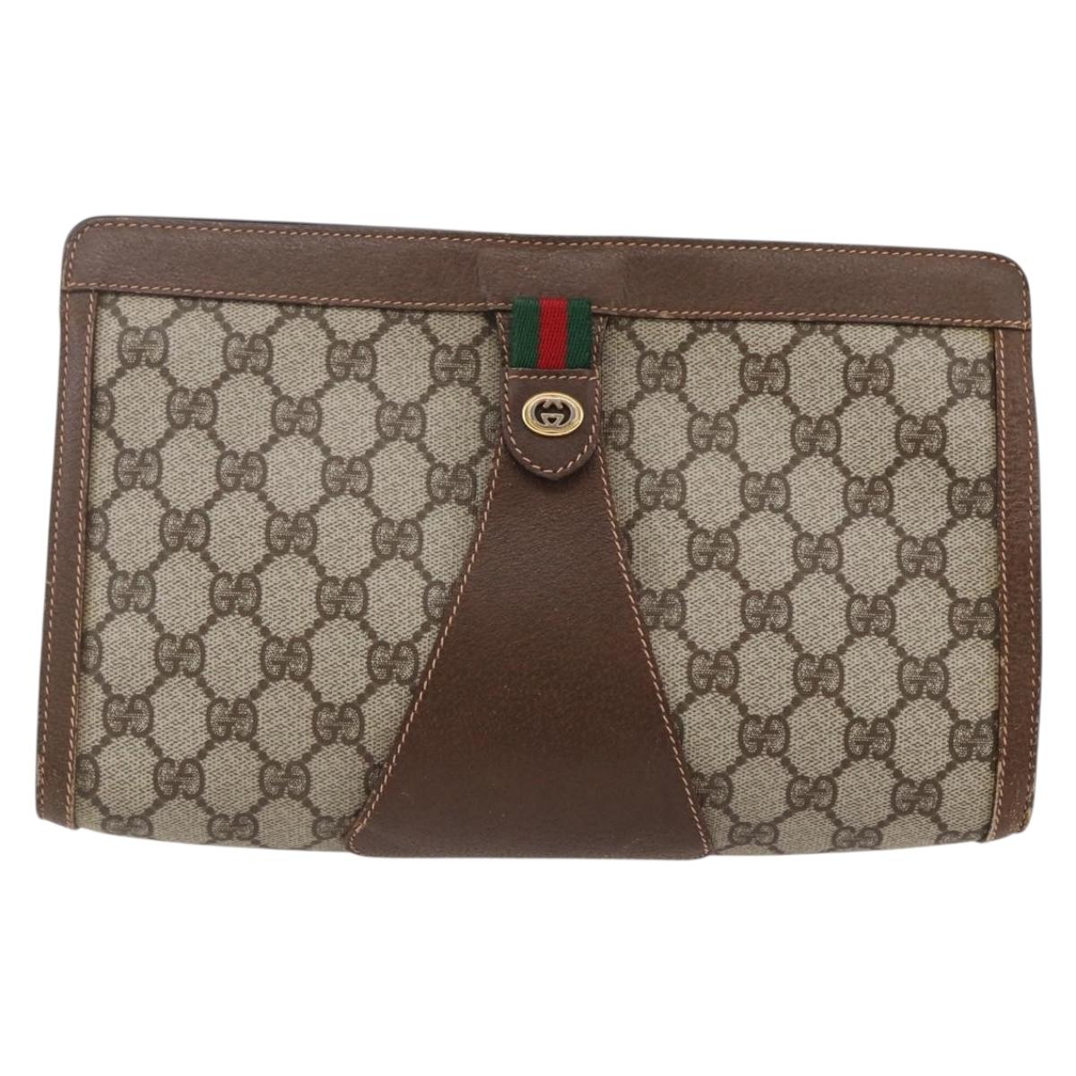 GUCCI GG Supreme Web Sherry Line Clutch Bag PVC Beige Red 156 01 033 Auth 146257