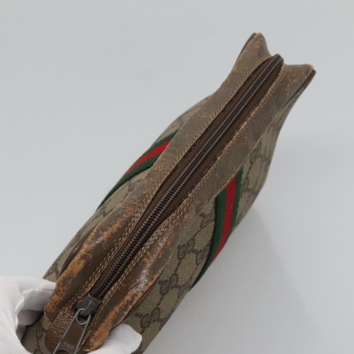 GUCCI GG Supreme Web Sherry Line Clutch Bag PVC Beige Red 56 01 012 Auth BA1131