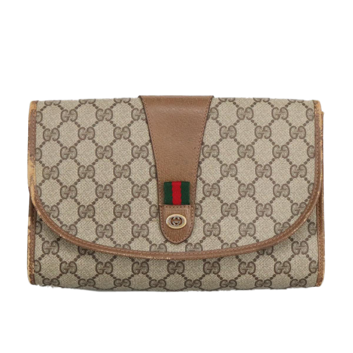GUCCI GG Supreme Web Sherry Line Clutch Bag PVC Beige Red 89 01 030 Auth 98082