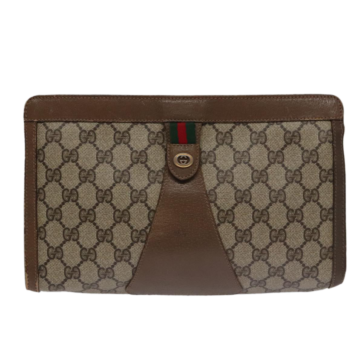 GUCCI GG Supreme Web Sherry Line Clutch Bag PVC Beige Red 89 01 033 Auth ep7068