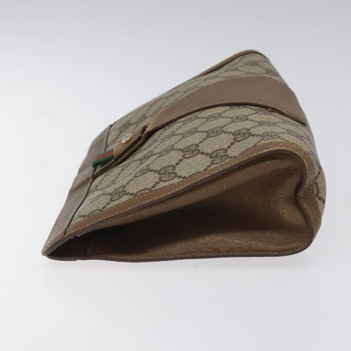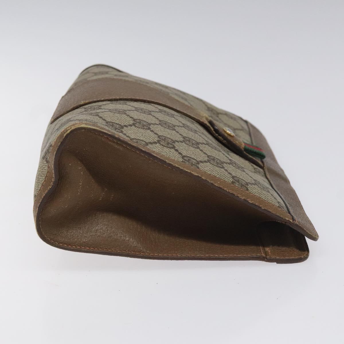 GUCCI GG Supreme Web Sherry Line Clutch Bag PVC Beige Red Green Auth 115578