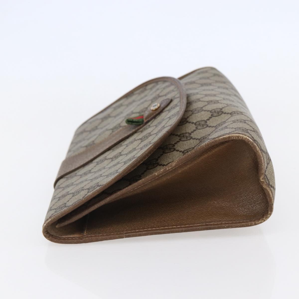 GUCCI GG Supreme Web Sherry Line Clutch Bag PVC Leather Beige Red Auth 146147