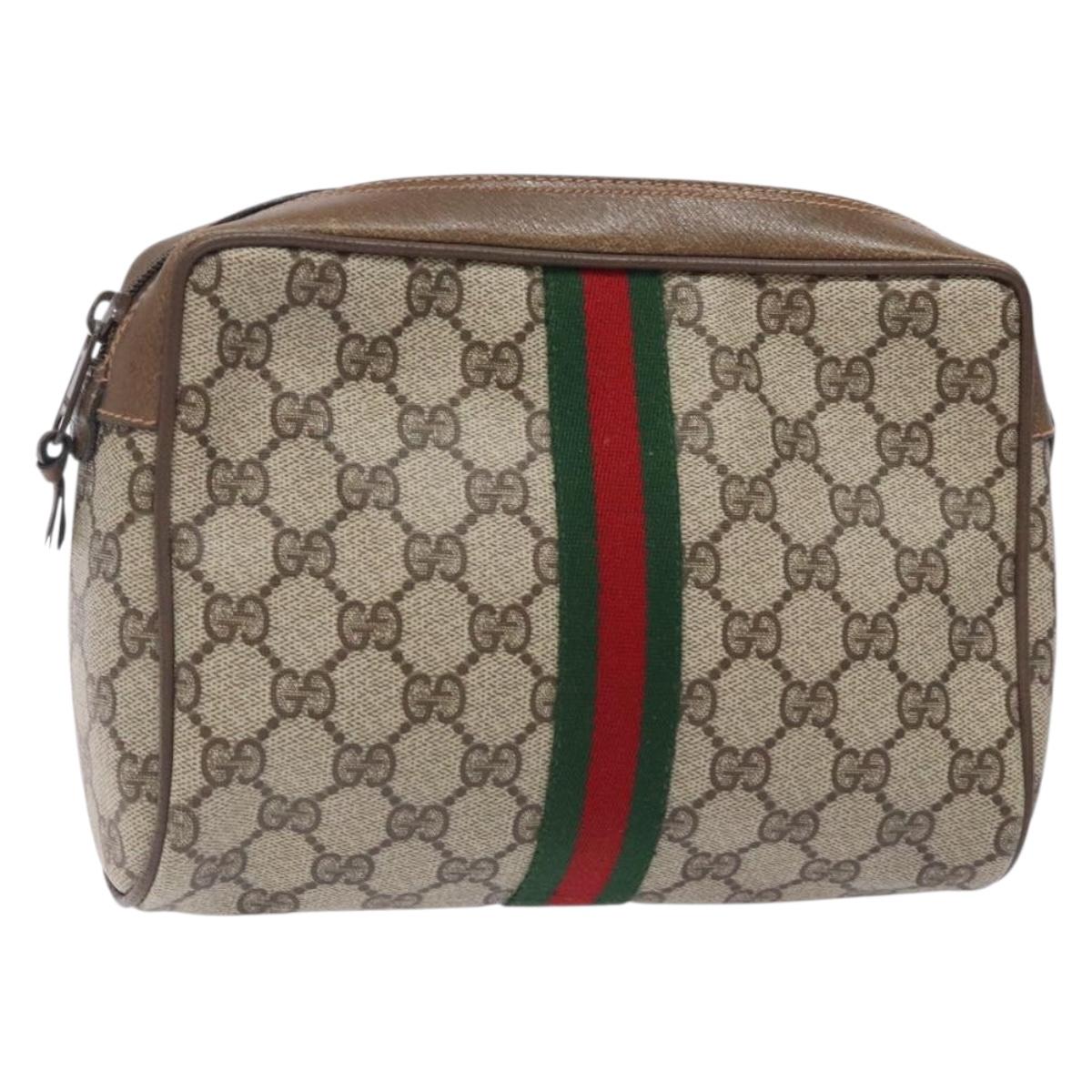 GUCCI GG Supreme Web Sherry Line Clutch Bag PVC Red Gold 89 01 012 Auth bs27688