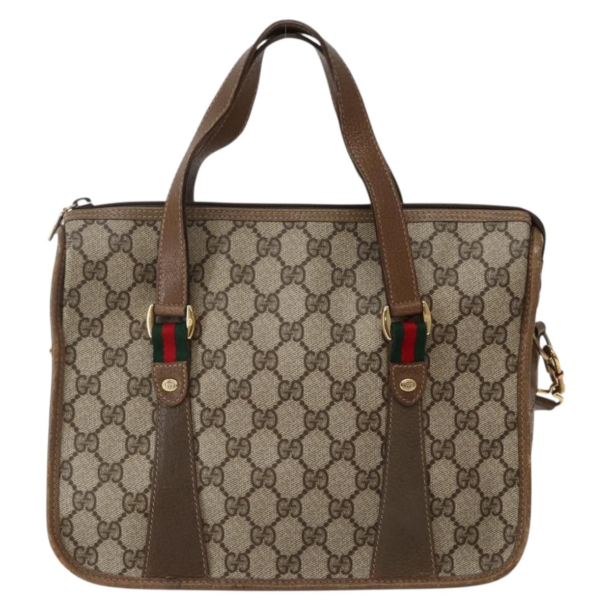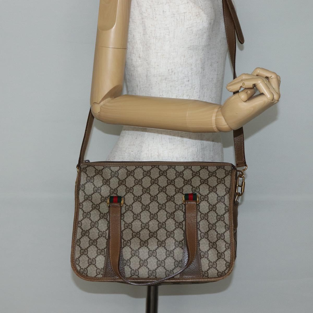 GUCCI GG Supreme Web Sherry Line Bag PVC 2way Beige Gold 41 02 039 Auth 142440