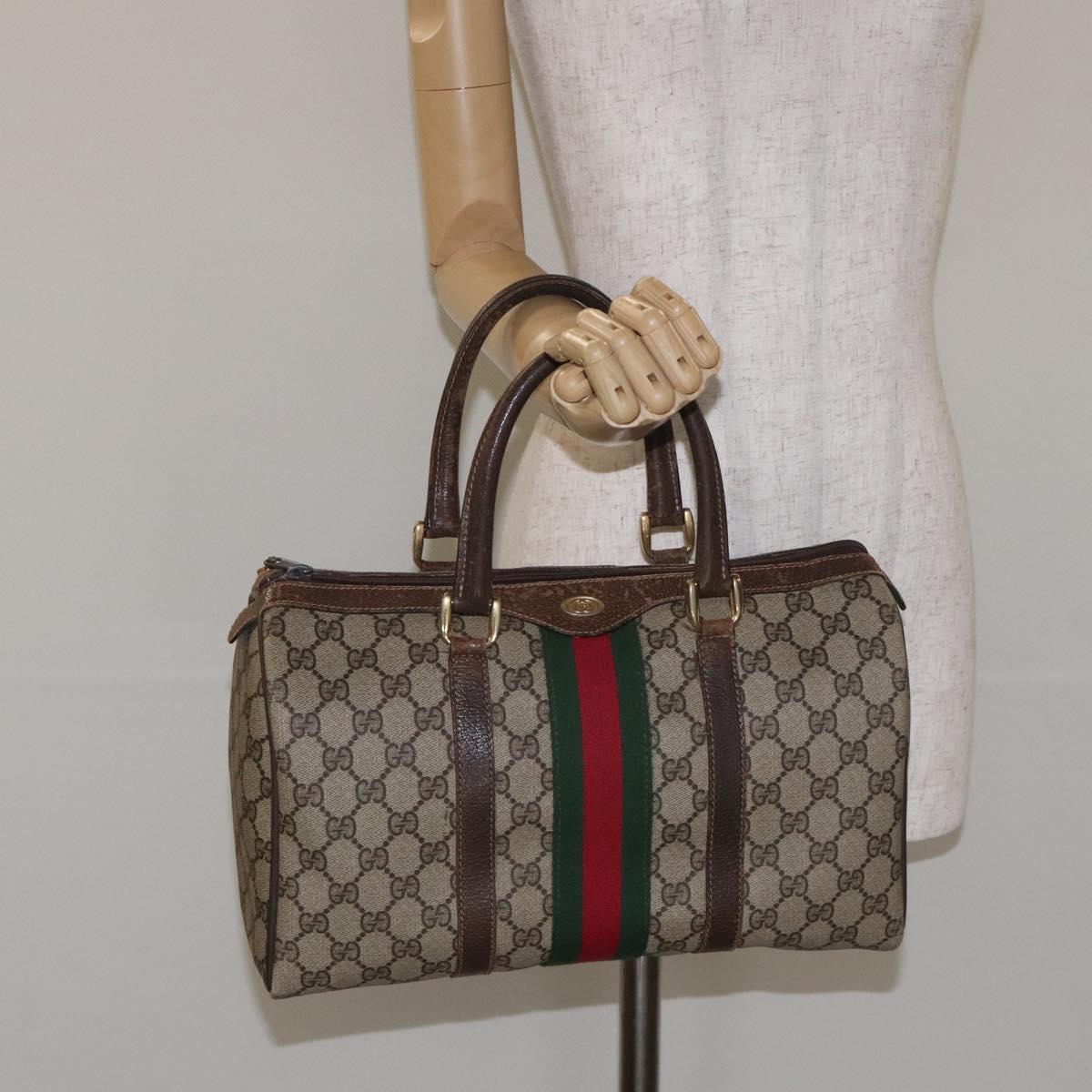 GUCCI GG Supreme Web Sherry Line Hand Bag PVC Beige Gold 40 3842 Auth 129518