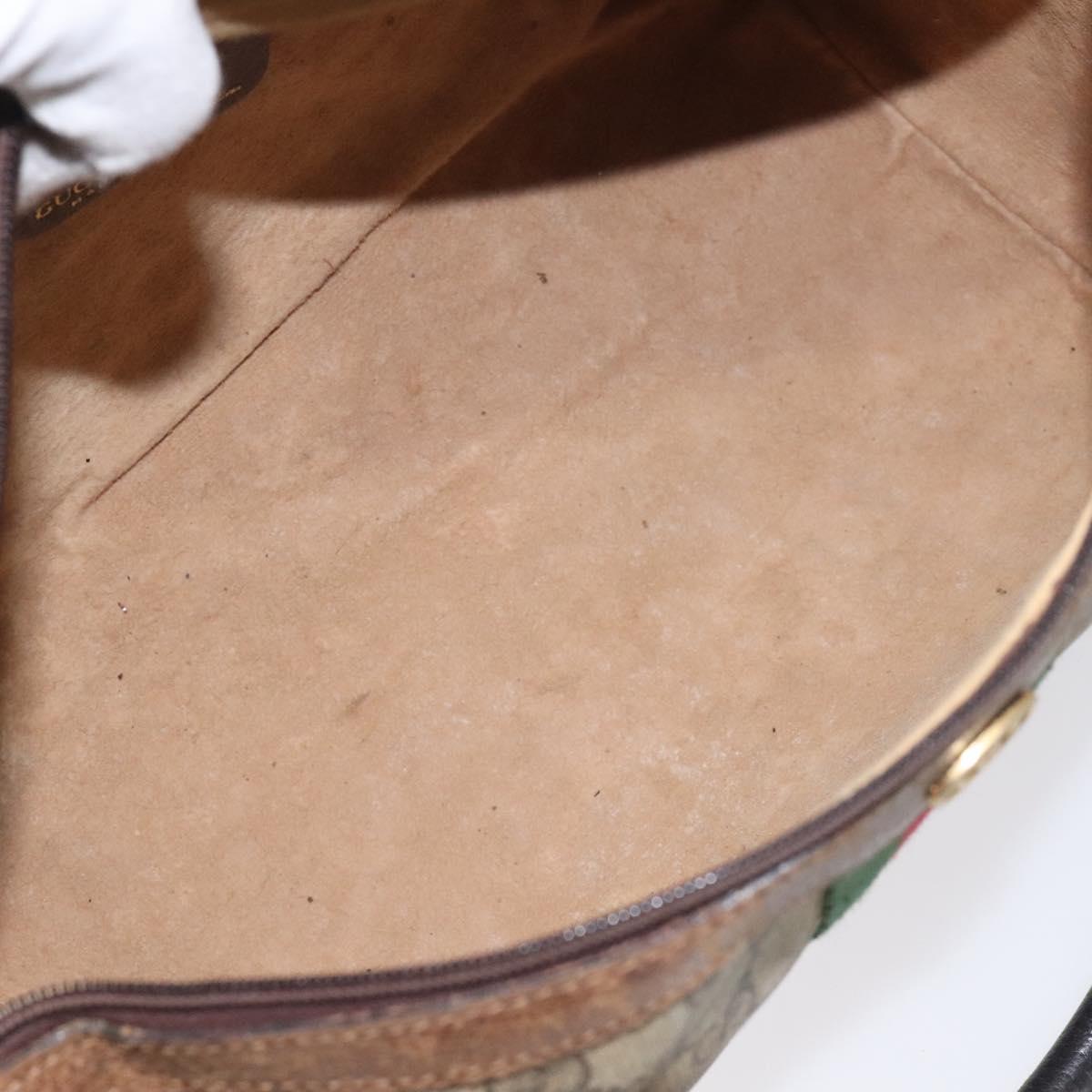 GUCCI GG Supreme Web Sherry Line Hand Bag PVC Beige Gold Auth 129383