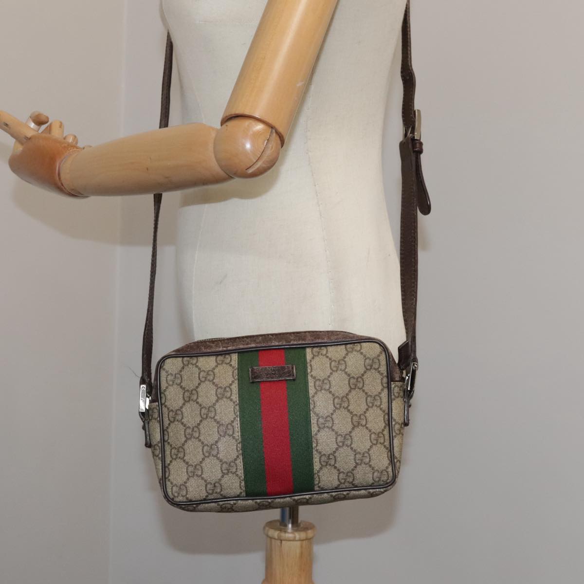 GUCCI GG Supreme Web Sherry Line Shoulder Bag Beige Silver 162910 Auth yk16237