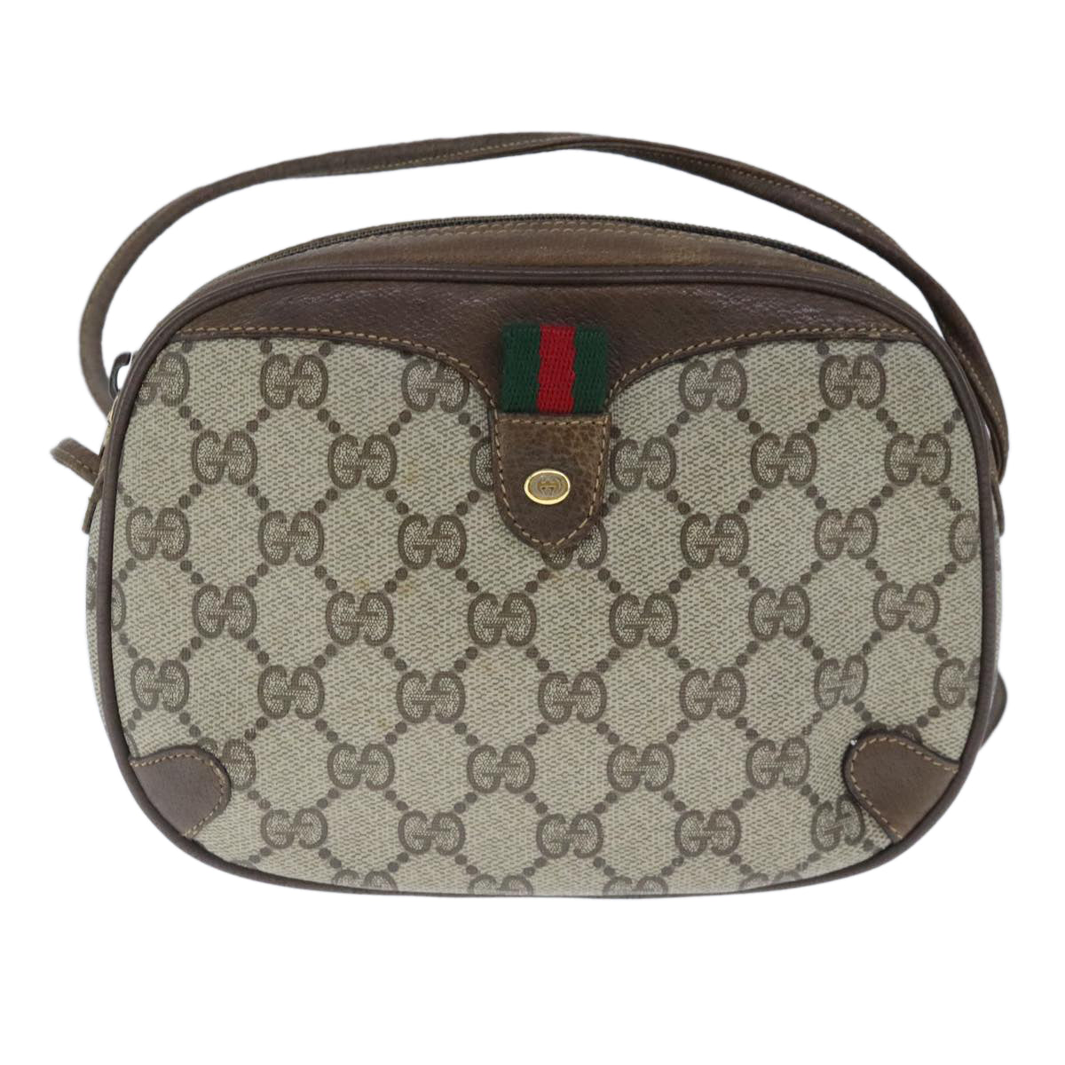 GUCCI GG Supreme Web Sherry Line Shoulder Bag PVC Beige 89 02 066 Auth 103458