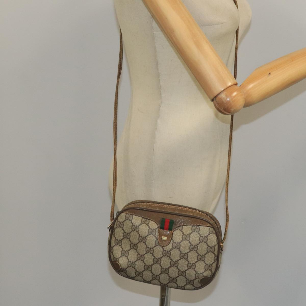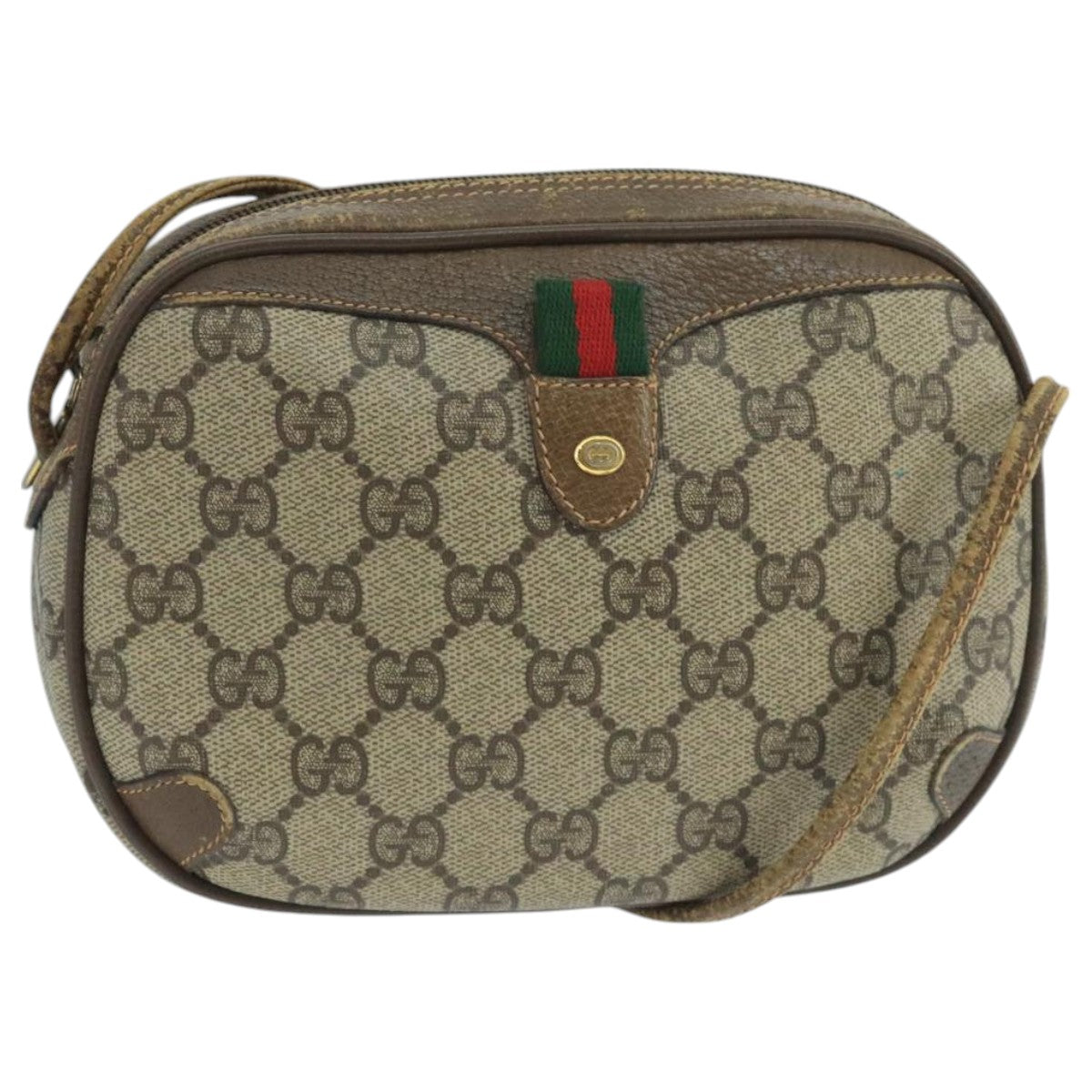 GUCCI GG Supreme Web Sherry Line Shoulder Bag PVC Beige 89 02 066 Auth 105088