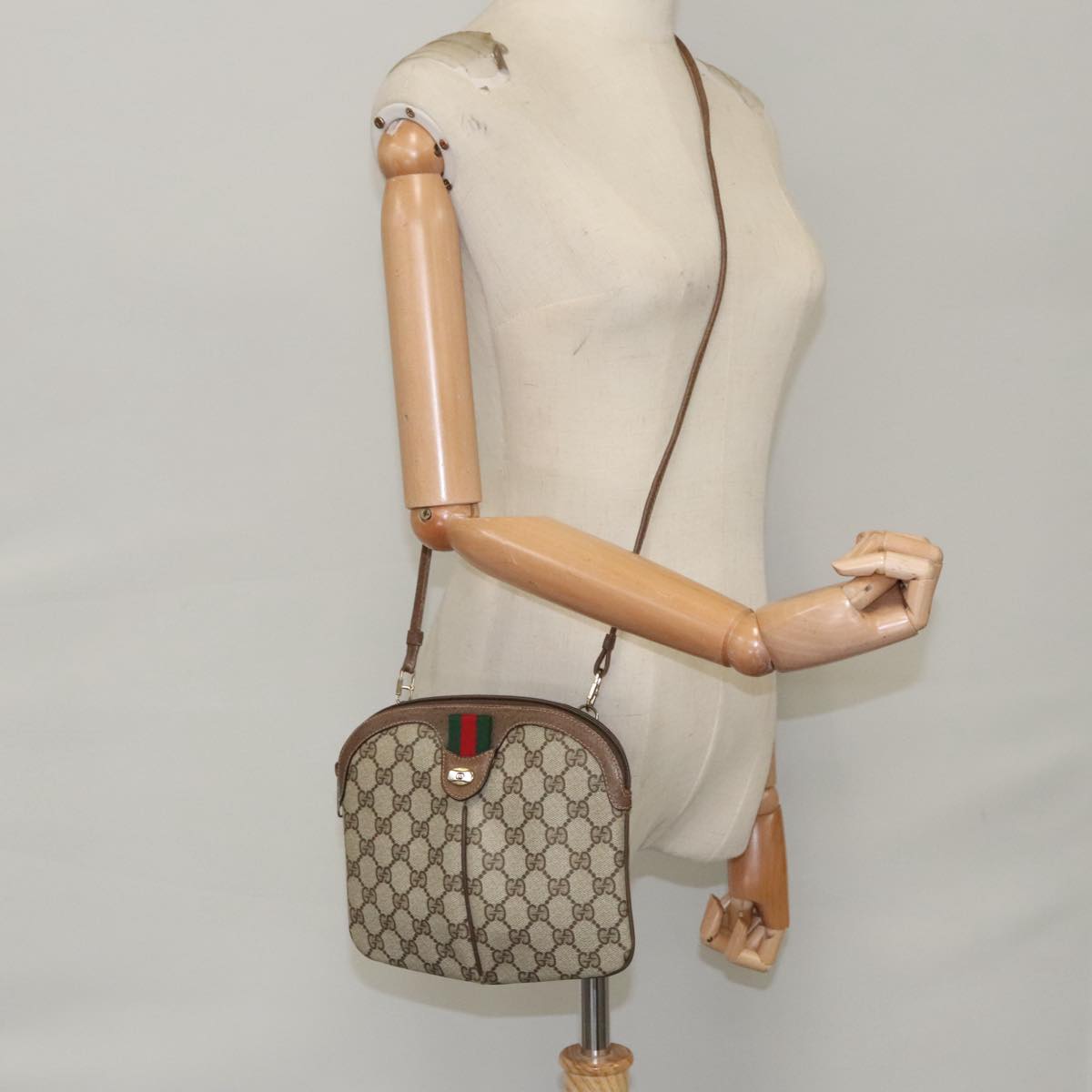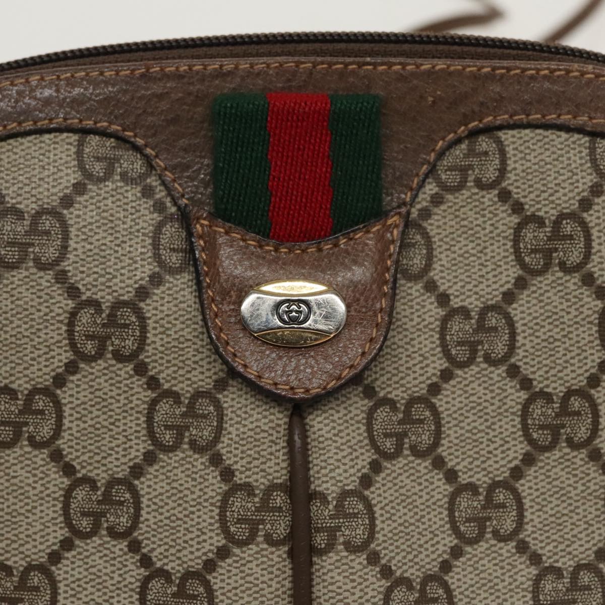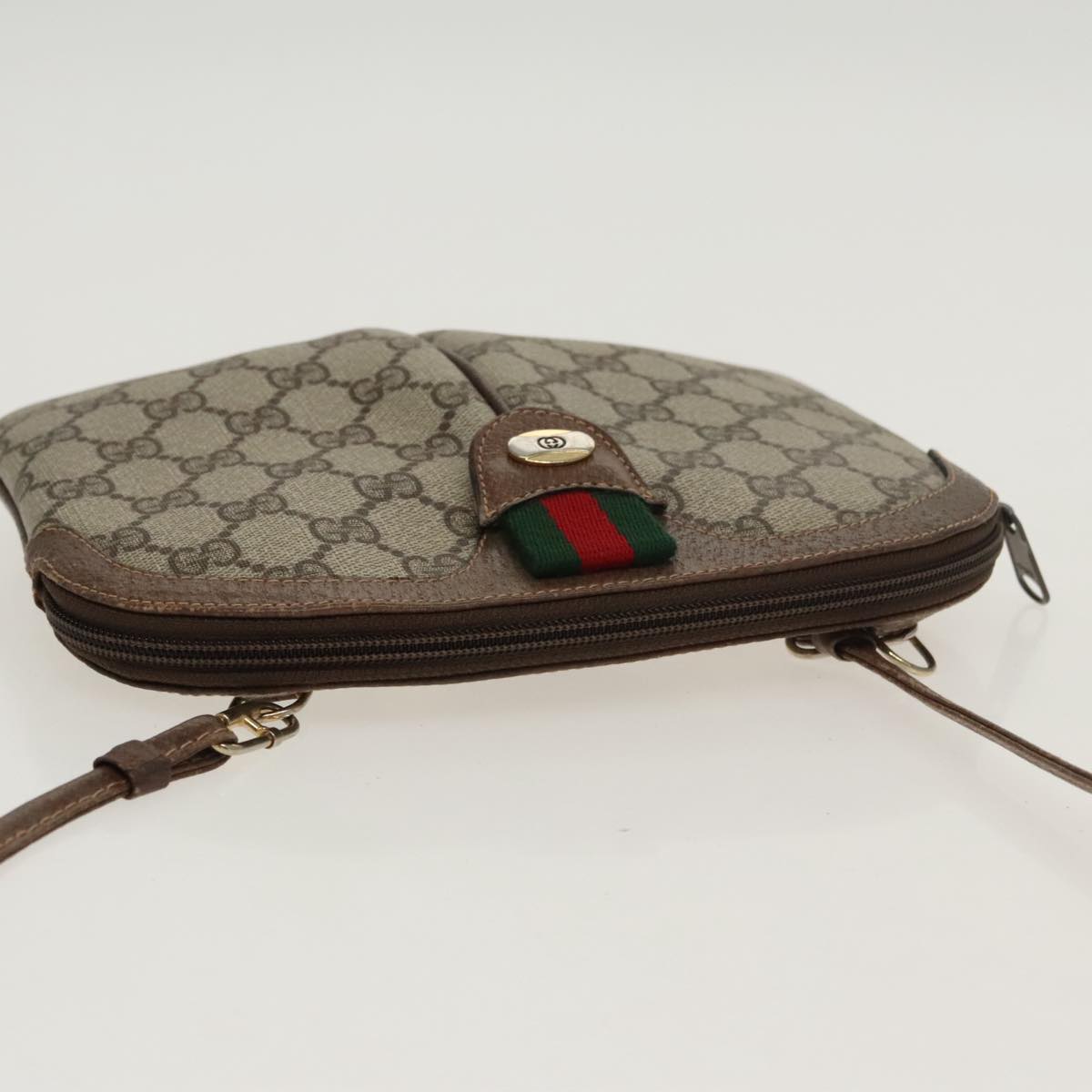 GUCCI GG Supreme Web Sherry Line Shoulder Bag PVC Beige 904 02 047 Auth 100689