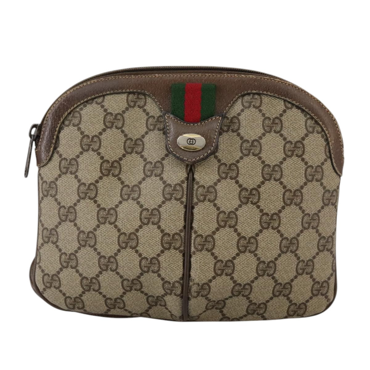 GUCCI GG Supreme Web Sherry Line Shoulder Bag PVC Beige 904 02 047 Auth 111359