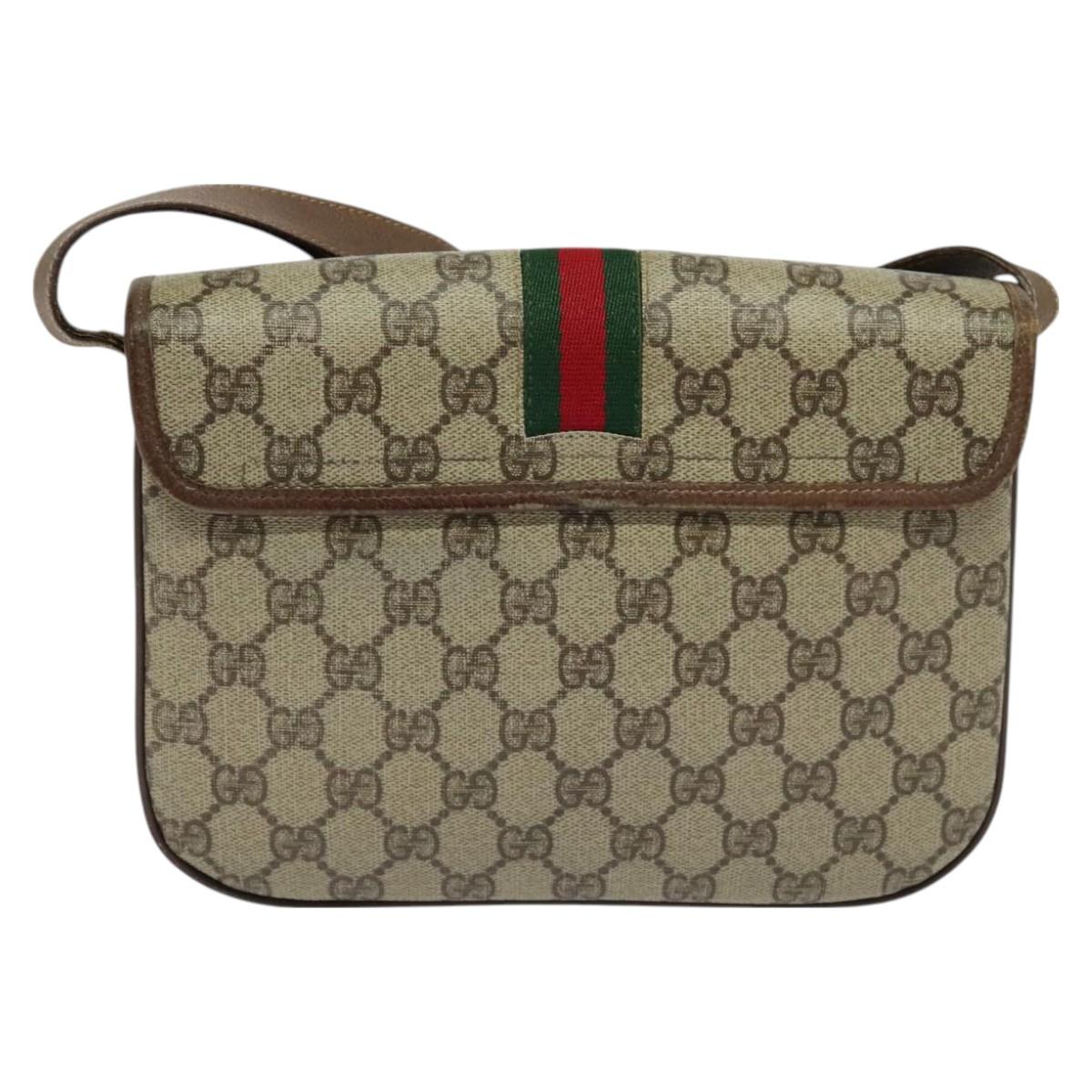 GUCCI GG Supreme Web Sherry Line Bag PVC Beige 001 113 6862 8039 Auth 126794
