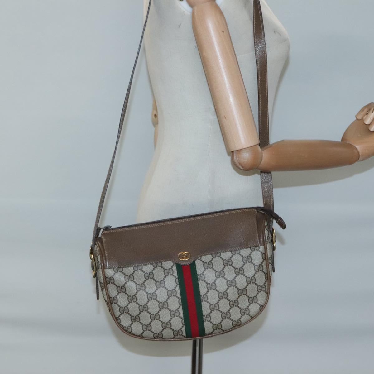 GUCCI GG Supreme Web Sherry Line Shoulder Bag PVC Beige 001 37 4001 Auth 122548
