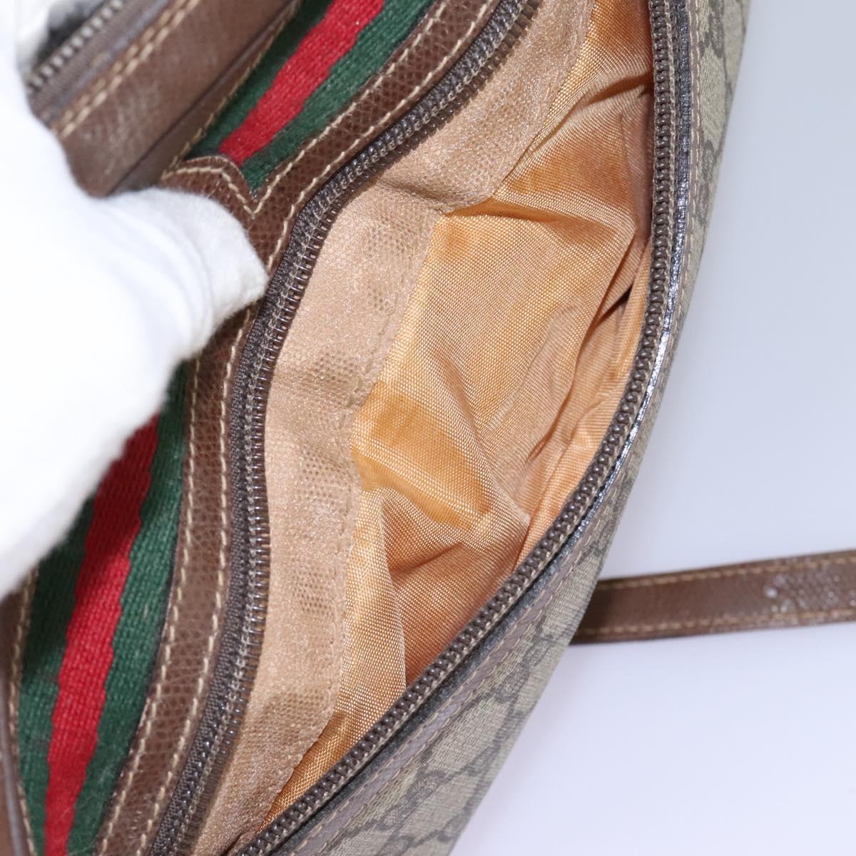GUCCI GG Supreme Web Sherry Line Shoulder Bag PVC Beige Gold Auth 113303