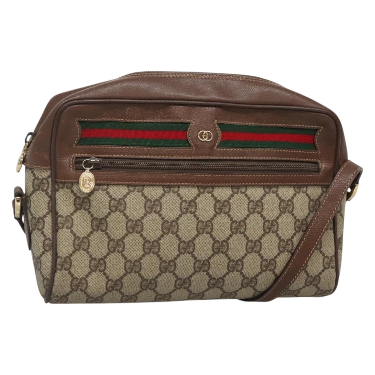 GUCCI GG Supreme Web Sherry Line Bag PVC Beige Gold 001 56 6472 Auth ep10466