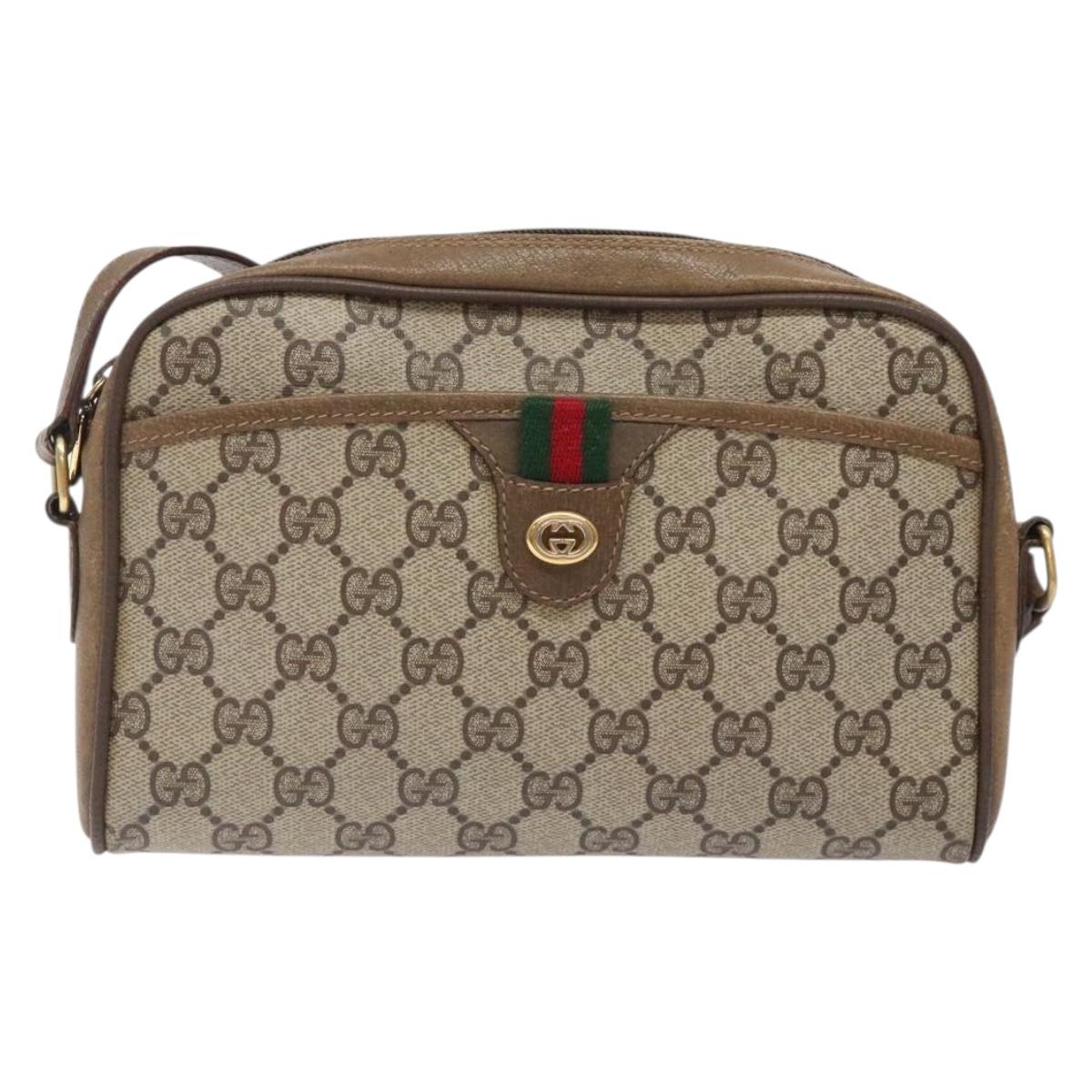 GUCCI GG Supreme Web Sherry Line Bag PVC Beige Gold 116 02 089 Auth BA4187