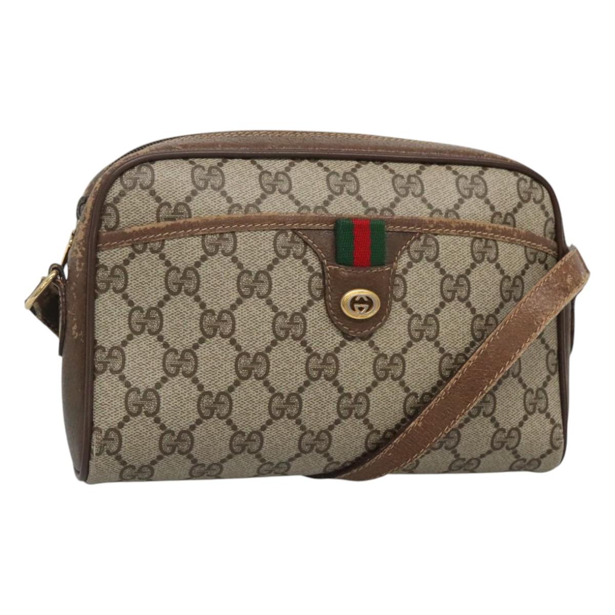 GUCCI GG Supreme Web Sherry Line Bag PVC Beige Gold 116 02 089 Auth BD1622