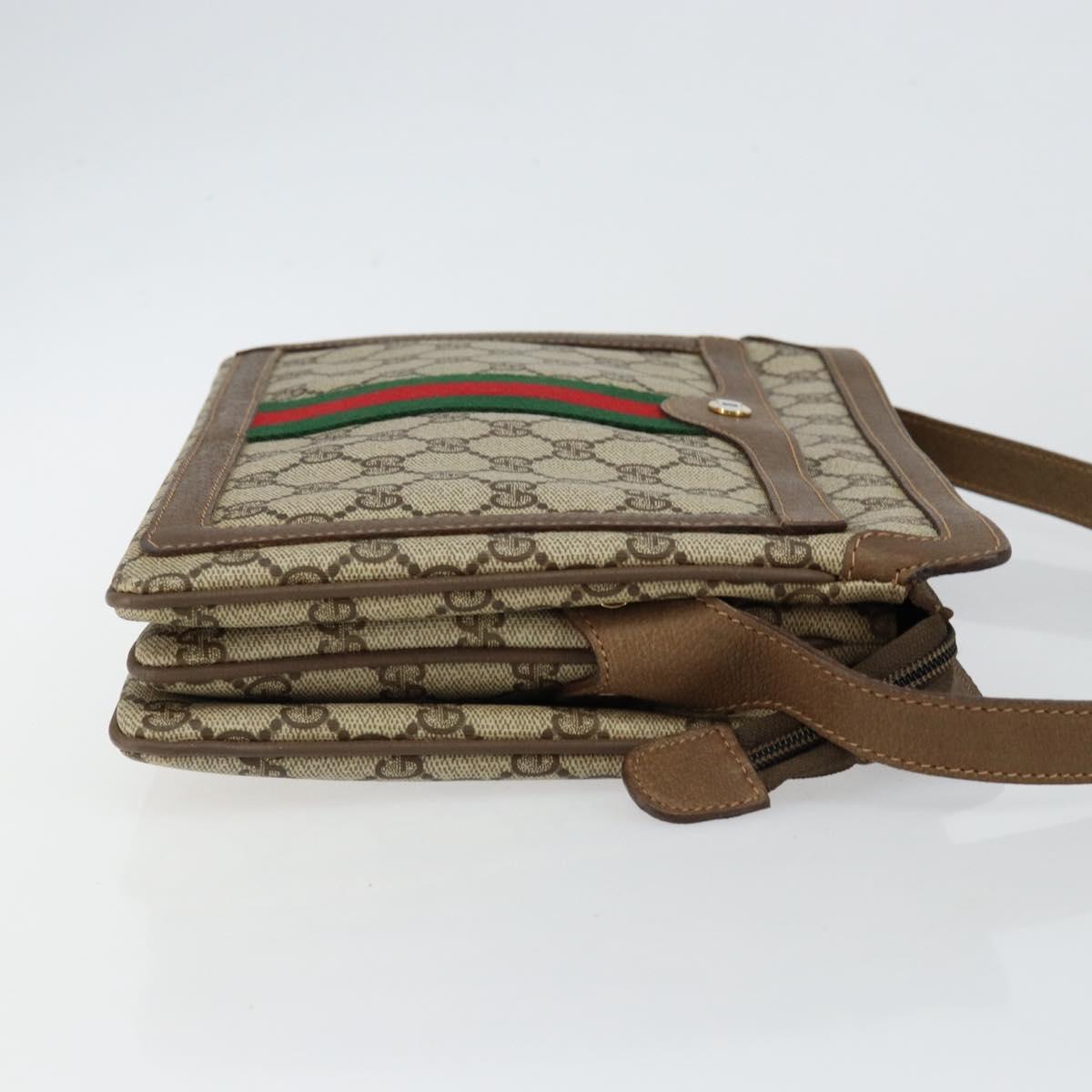 GUCCI GG Supreme Web Sherry Line Bag PVC Beige Gold 14 02 013 Auth 144420