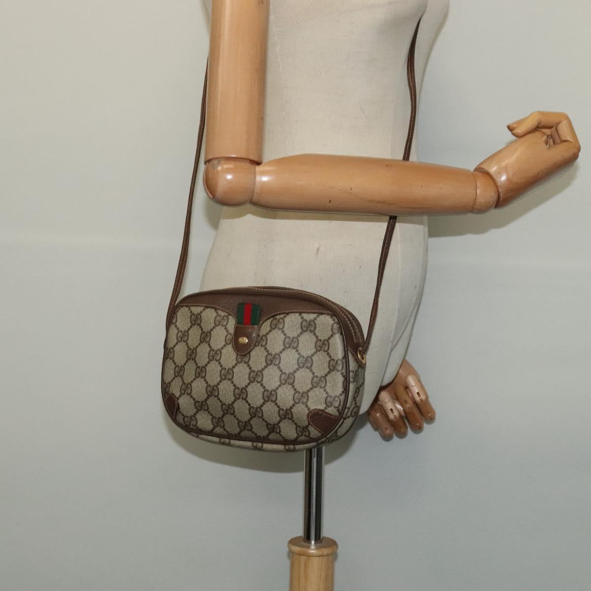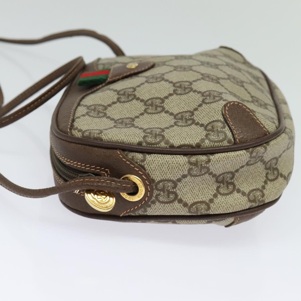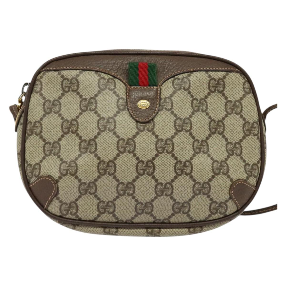 GUCCI GG Supreme Web Sherry Line Bag PVC Beige Gold 156 02 066 Auth 131723