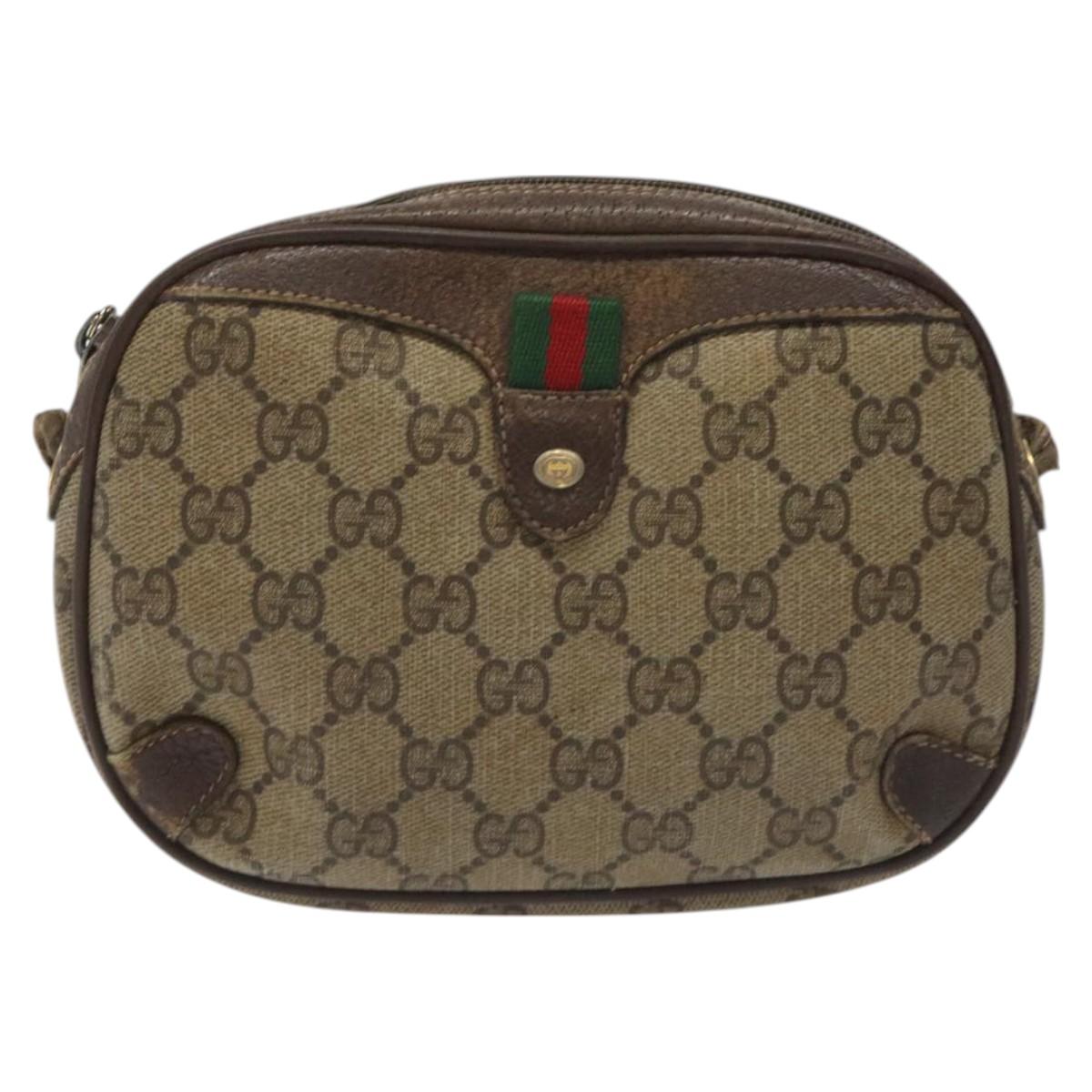 GUCCI GG Supreme Web Sherry Line Shoulder Bag PVC Beige 156 02 066 Auth BD867