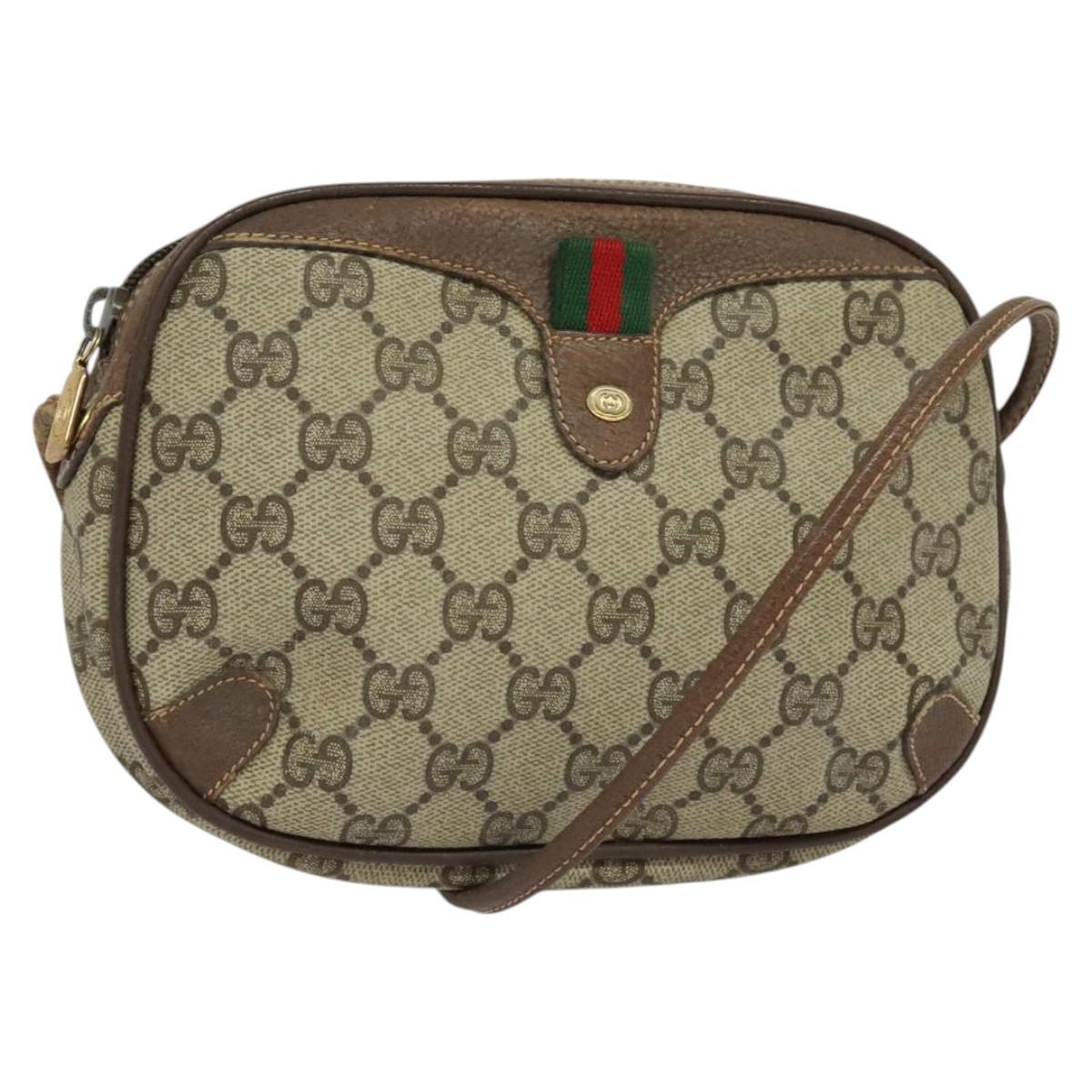 GUCCI GG Supreme Web Sherry Line Shoulder Bag PVC Beige 156 02 066 Auth MY221