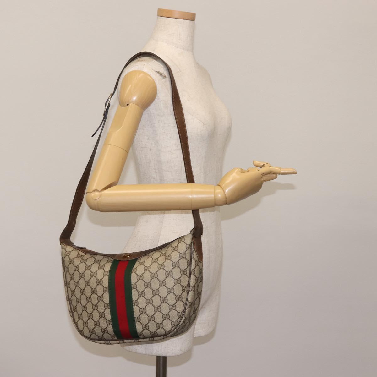GUCCI GG Supreme Web Sherry Line Bag PVC Beige Gold 29 001 3840 Auth BA5840