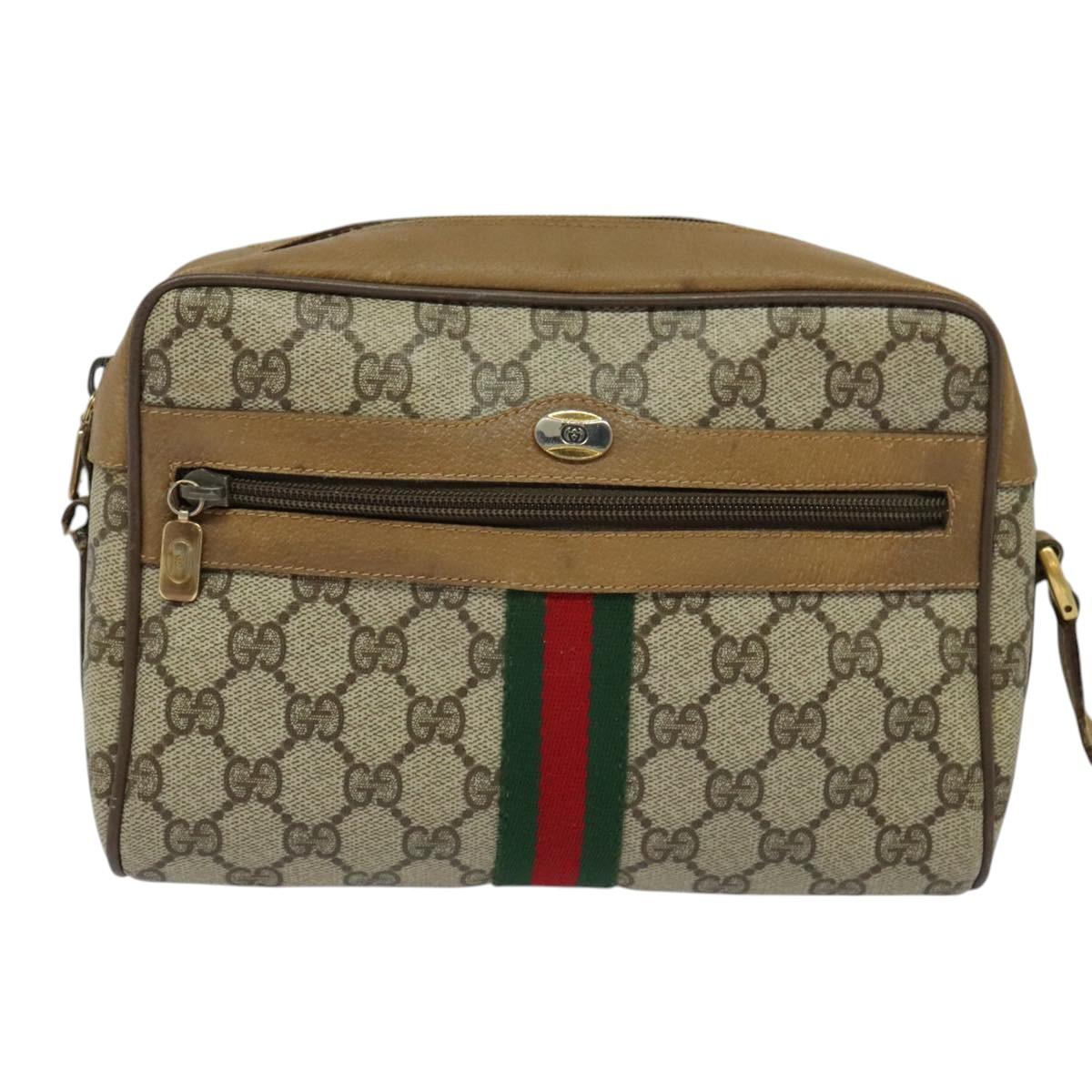 GUCCI GG Supreme Web Sherry Line Bag PVC Beige Gold 68 02 004 Auth bs25484
