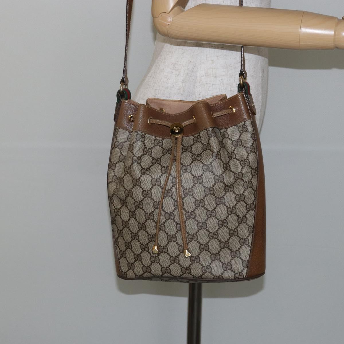 GUCCI GG Supreme Web Sherry Line Shoulder Bag PVC Beige 72 02 034 Auth 143192