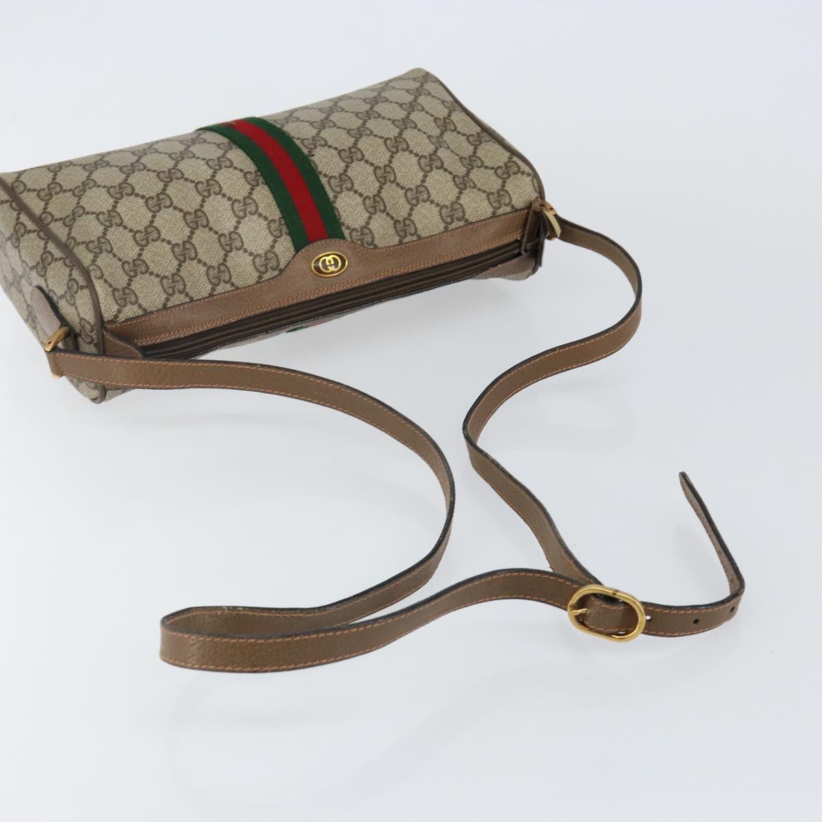 GUCCI GG Supreme Web Sherry Line Bag PVC Beige Gold 89 02 017 Auth 143775