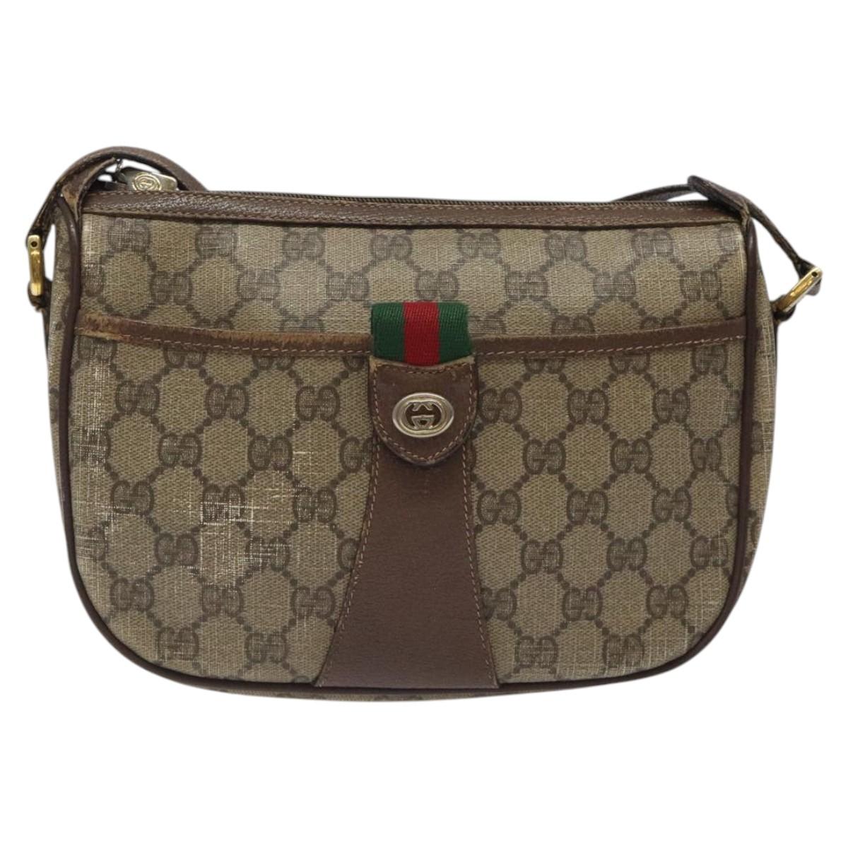 GUCCI GG Supreme Web Sherry Line Bag PVC Beige Gold 89 02 032 Auth BA1397
