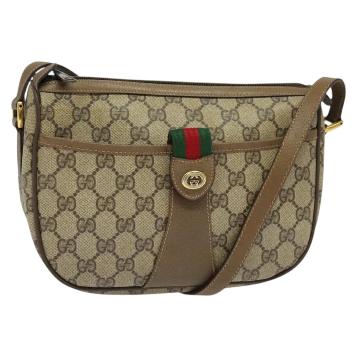 GUCCI GG Supreme Web Sherry Line Bag PVC Beige Gold 89 02 032 Auth bs27894