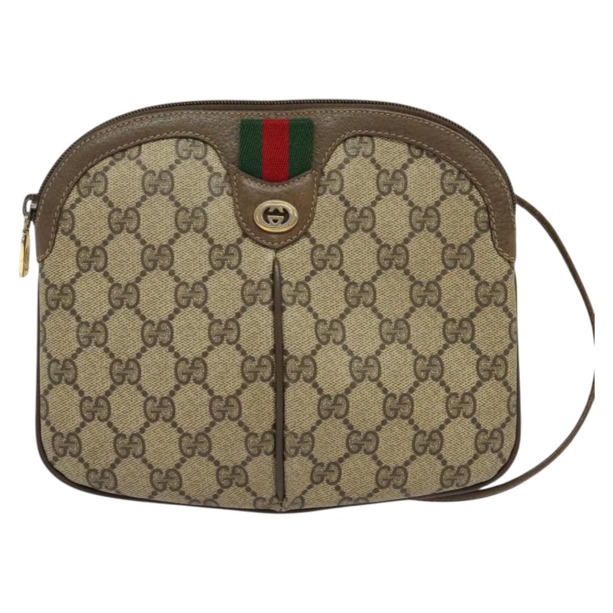 GUCCI GG Supreme Web Sherry Line Bag PVC Beige Gold 904 02 047 Auth ep9738