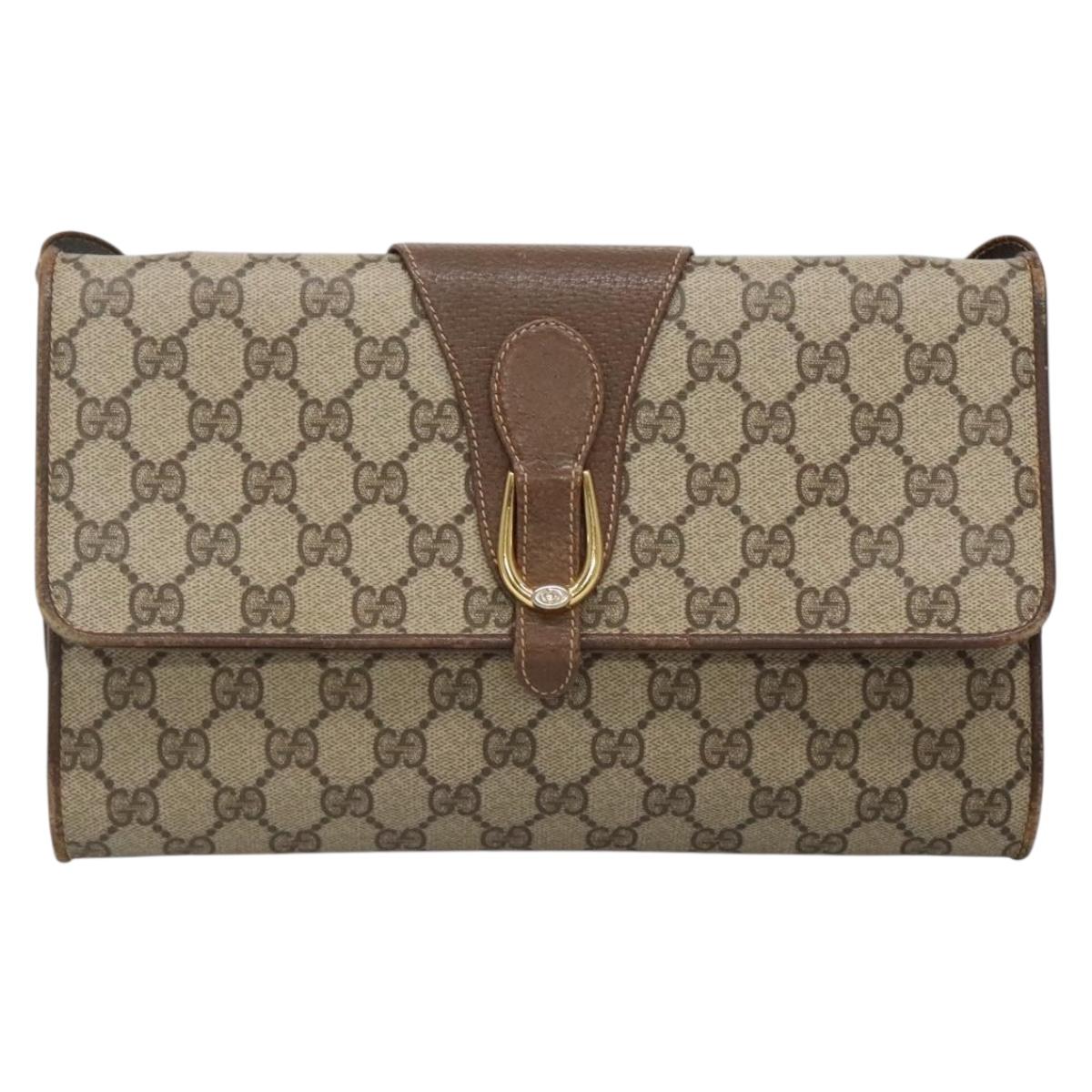 GUCCI GG Supreme Web Sherry Line Bag PVC Beige Gold 904 02 050 Auth 136049