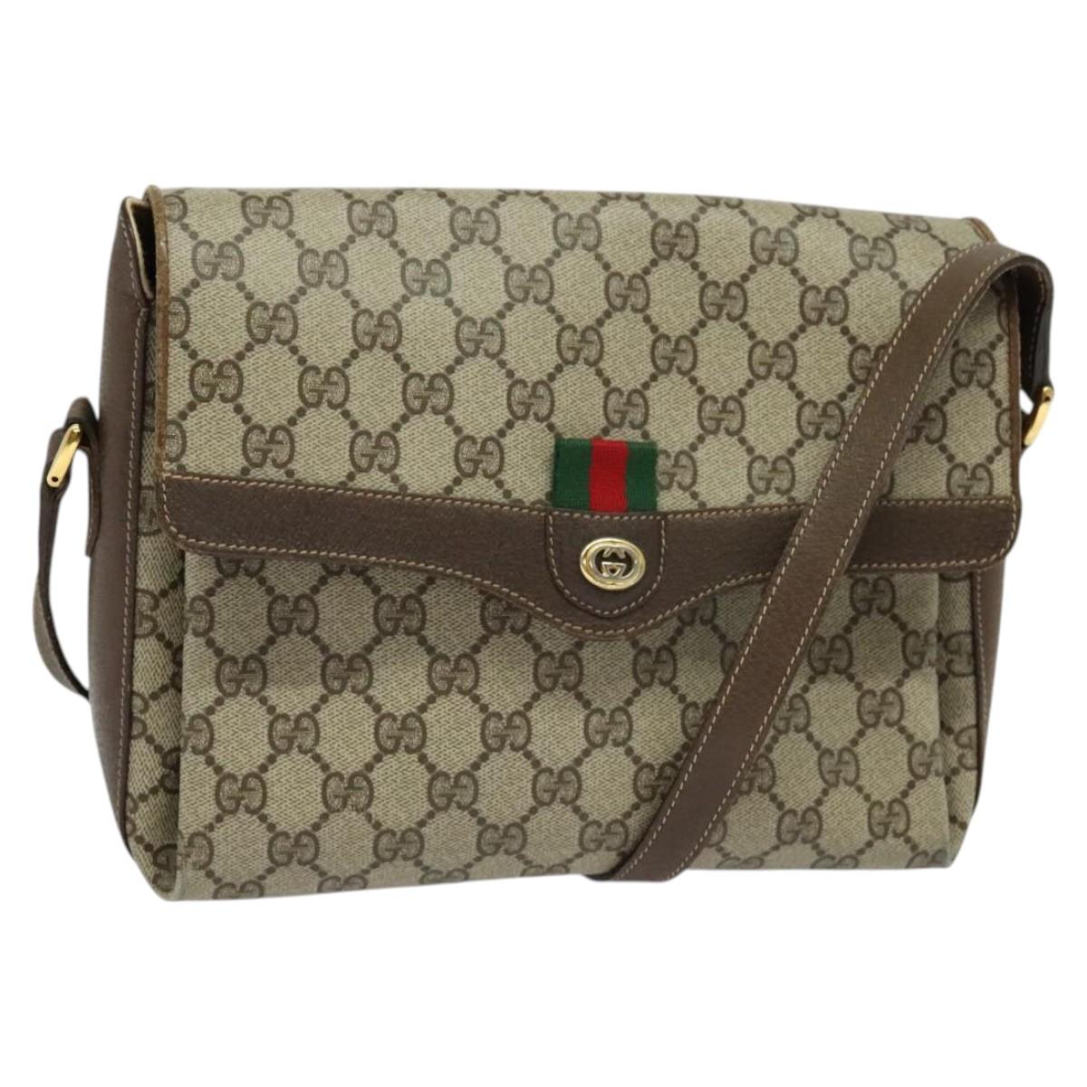 GUCCI GG Supreme Web Sherry Line Bag PVC Beige Gold 904 02 084 Auth 122223