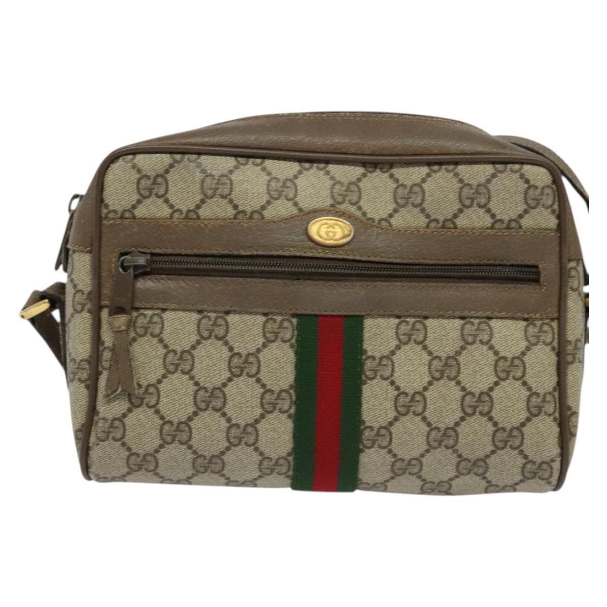 GUCCI GG Supreme Web Sherry Line Bag PVC Beige Gold 98 02 004 Auth bs27891