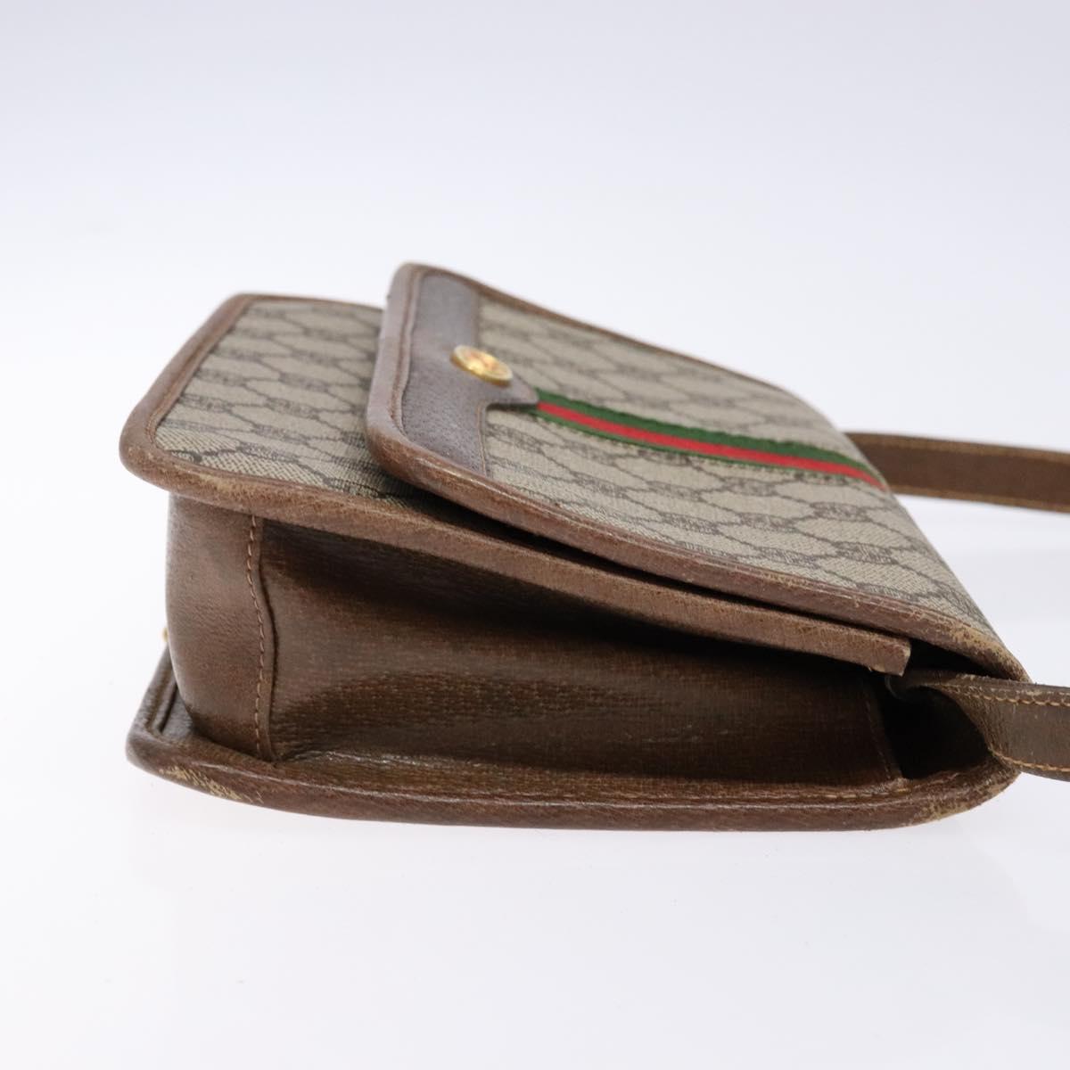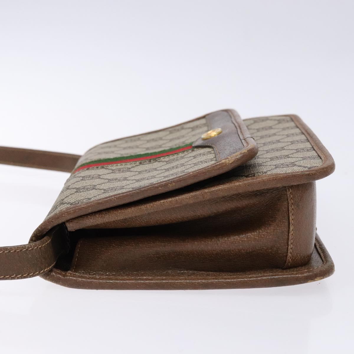 GUCCI GG Supreme Web Sherry Line Shoulder Bag PVC Beige Gold Auth 130754