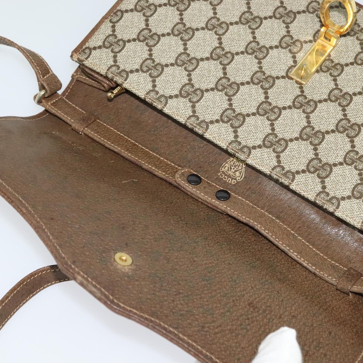 GUCCI GG Supreme Web Sherry Line Shoulder Bag PVC Beige Gold Auth BA3358