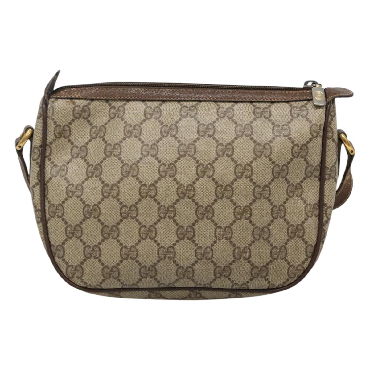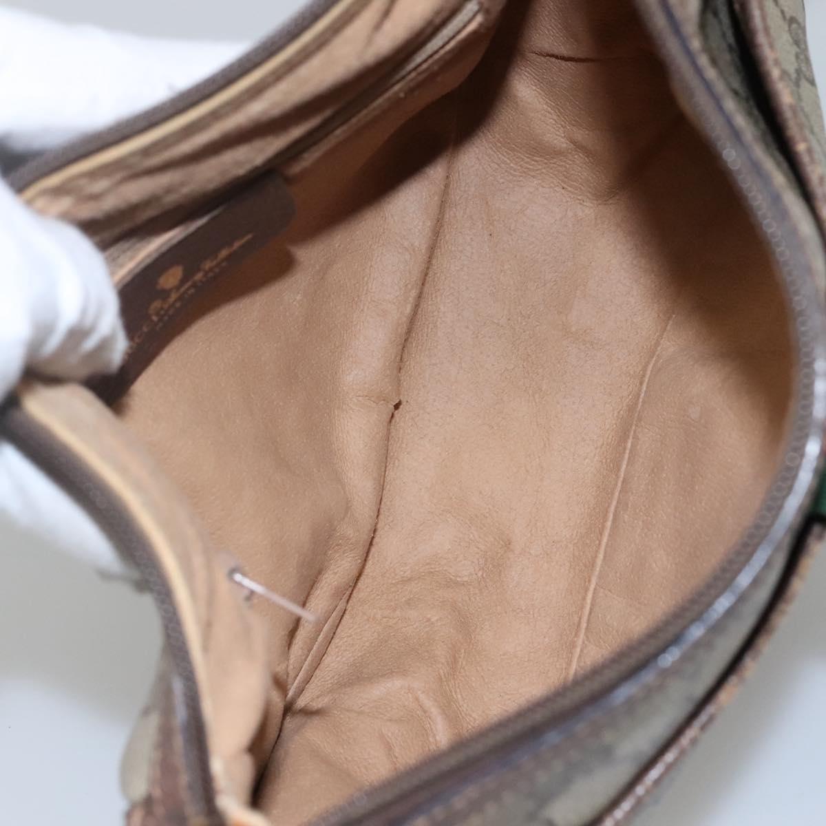 GUCCI GG Supreme Web Sherry Line Shoulder Bag PVC Beige Gold Auth KD211