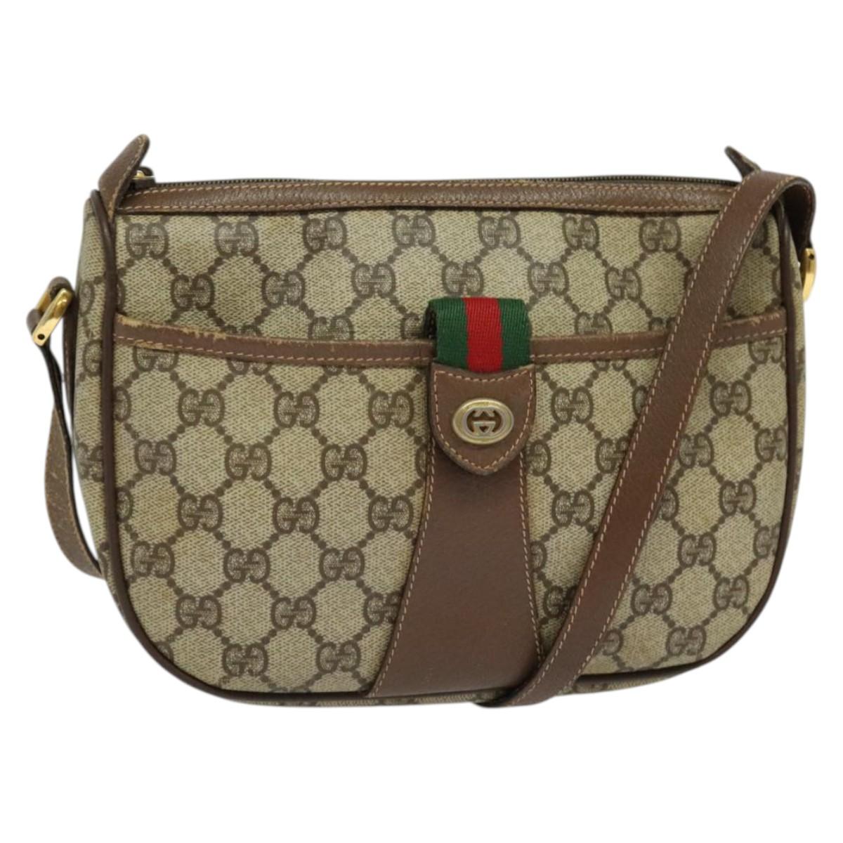 GUCCI GG Supreme Web Sherry Line Bag PVC Beige Gold Red 89 02 032 Auth 133747