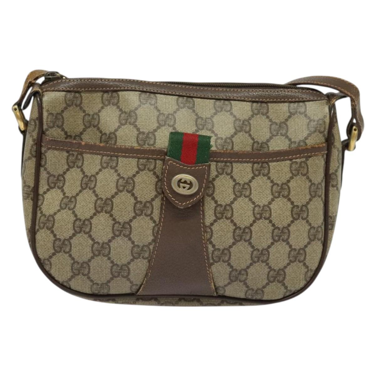 GUCCI GG Supreme Web Sherry Line Bag PVC Beige Gold Red 89 02 032 Auth 139948