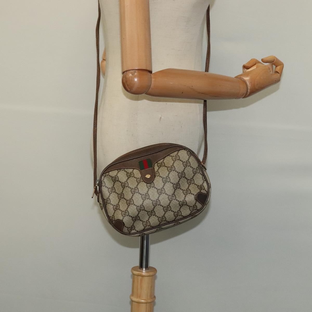 GUCCI GG Supreme Web Sherry Line Bag PVC Beige Gold Red 89 02 066 Auth BA2391