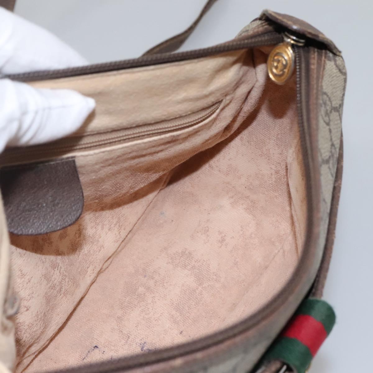 GUCCI GG Supreme Web Sherry Line Shoulder Bag PVC Beige Gold Red Auth 115099